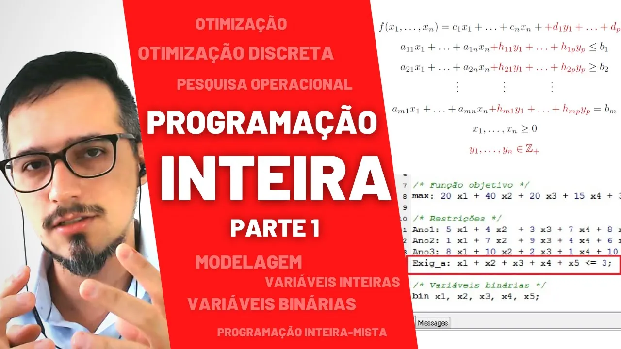 lineares na do tipo menor igual ou maior igualdade tudo de anterior se mantém Ei exceto pelo domínio de X aqui ele tem que ser inteira agora ele não pode ser dois. Nova ele não pode ser 3.7 e tem que ser 1230 qualquer valor Inter e aqui ele está considerando a programação linear inteira aí eu meti o linear aqui o nosso curso já é um curso de otimização linear tá então a gente tá sumido ainda EA constante multiplicando variável tanto na função de tio quanto nas inscrições não tem variável no ano variável continua sendo otimização linear