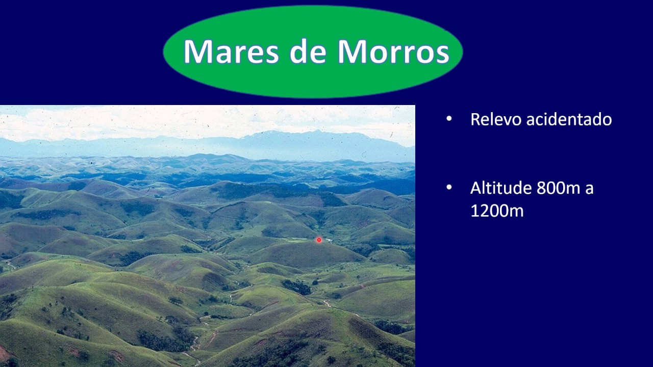 homem grande parte deles já serviu aqui para a transformação de pastagens e também foi substituído por fazendas de soja essa plantação de soja e já ganhou grande parte de toda a esse domínio morfoclimático continuando nessa história nós temos então o domínio morfoclimático dos mares de morros mares de morro o professor ab'saber ele chamou dessa maneira devido ao fato dele morar aqui no interior de são paulo e quando ele olha as montanhas os morros na região ele tem formato de colinas arredondado formando ondas que se assemelham ao mar mar de morros ea dessa maneira em que