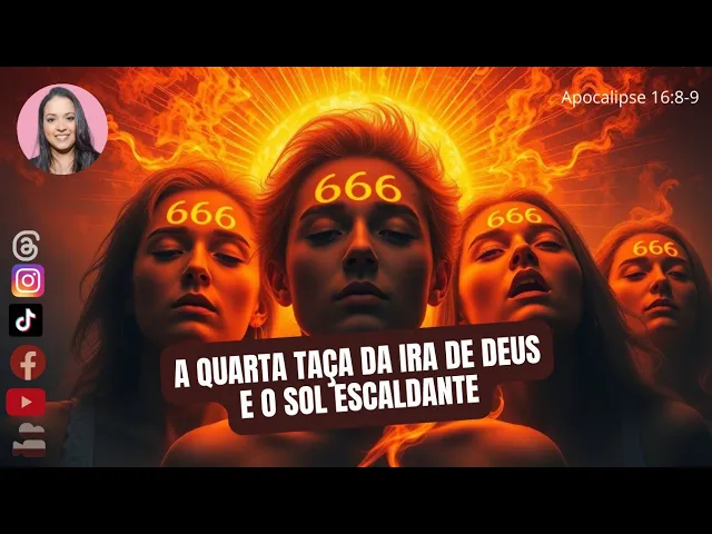 a quarta taça da Ira de Deus contém uma praga que vai atingir o sol após a transformação do mar e das fontes de água doce em sangue a quarta taça eleva a intensidade dos castigos divinos ao atingir diretamente o sol que é a fonte Vital paraa vida na Terra então com o mar e as fontes de água doce transformadas em sangue o acesso à água potável fica completamente comprometido e agora Os homens vão estar abrasados de tanto calor porque o sol vai estar escaldante Olha o que diz a palavra do senhor em Apocalipse Capítulo 16