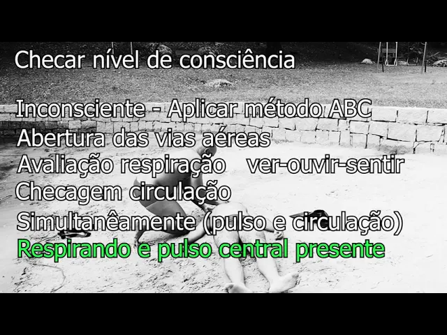 do ver ouvir e sentir e checagem da circulação importante salientar que a checagem de pulso e respiração poderá ser feita pelo bombeiro ao mesmo tempo essa vítima de grau TR ela estará respirando e com pulso Central presente porém eu já identifiquei que esta vítima apresenta uma dificuldade respiratória pelos seus grandes esforços da mecânica para ventilar cheque pulso Radial a fim de identificar que essa vítima encontra-se realmente em grau TR e não em grau 4 neste caso o grau TR a vítima terá tanto o pulso Central como pulso periférico até o presente momento parte do que