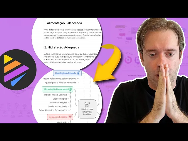 dá uma olhada no que essa ia é capaz de fazer por você essa ferramenta de Inteligência Artificial gratuita transforma qualquer tipo de texto em elementos visuais em poucos cliques eu pedi pra ferramenta gerar para mim de uma forma automática quais seriam ali os sete hábitos para uma vida saudável acredite ou não a ferramenta criou para mim todo esse conteúdo aqui com todos os tópicos para uma vida mais saudável e ela também criou uma série de elementos visuais que eu posso aplicar ilustrações fluxogramas gráficos rodas pirâmides e vários outros elementos que eu posso utilizar para transformar