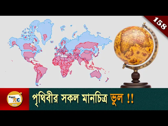 দেখুন তো পৃথিবীর এই ম্যাপটি ঠিক দেখাচ্ছে কিনা বিষবীয় অঞ্চলের দিকে কিছুটা লম্বাটে মনে হচ্ছে তাইতো এই ম্যাপটি দেখুন তো এবার মনে হচ্ছে ঠিক আছে পৃথিবীর এই ম্যাপের সাথে আমরা খুব ভালোভাবে পরিচিত স্কুল-কলেজের বই গুগল ম্যাপ সহ প্রায় প্রতি ক্ষেত্রেই পৃথিবীর এই ম্যাপ দেখে থাকি কিন্তু আপনি কি জানেন পৃথিবীর এই ম্যাপটি সঠিক নয় এমনকি পৃথিবীর যত রকম টুডি ম্যাপ রয়েছে তার সবগুলোই ভুল কোনটিতে দেশগুলোর শেপ ঠিক নেই তো কোনটিতে ল্যান্ড এরিয়া ঠিক নেই আসলে এটি একটি ফান্ডামেন্ট সমস্যা গোলাকার বস্তুর সারফেস কে কখনোই ফ্ল্যাট টুডি সারফেসে উপস্থাপন করা সম্ভব নয় কিন্তু বিভিন্ন কাজের প্রয়োজনে আমাদের ফ্ল্যাট ম্যাপের