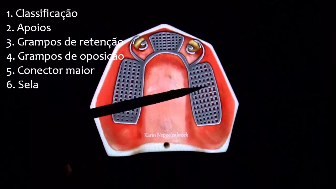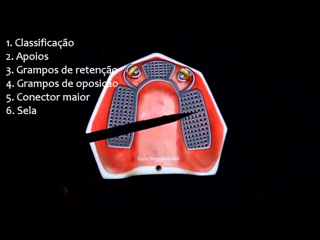 na aula de hoje vamos discorrer sobre planejamento de classes de arcos parcialmente desdentados com modificações ou seja casos mais complexos para prótese parcial removível é importante ter em mente a sequência de planejamento para que não se esqueça nenhum dos itens importantes que devem ser levados em contas durante essa fase de planejamento dação metálica a classificação dos apoios tipos de localização dos grampos de retenção e de oposição conector maior suas extensões e tipos as selas conectores menores linhas de fulcro retentores indiretos e planos guias a iniciar pela classe um com modificação no exemplo a seguir nós