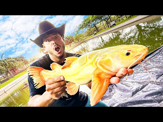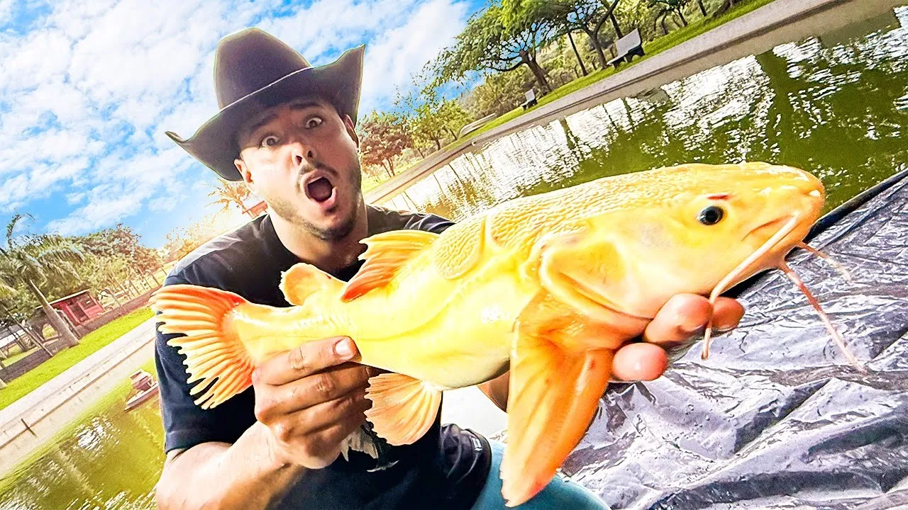 o ferrãozinho já grudou aqui D até febre ó até febre galera esse aqui é o famoso pintó pai Poo sar esse aí esse aqui é o me era o famoso pintado agora ele tá num lar novo agora comer feix he eu nem me Aproveitei sabe você pode trazer outro porque eu nem vi direito vou trazer um maior na próxima vez Que tamanho fica esse pintado Ah esse aí vai chegar uns 10 kg Esse é um í ele ele é o jundiara na verdade é o cruzamento do pintado com a da a charara com jun amazônico