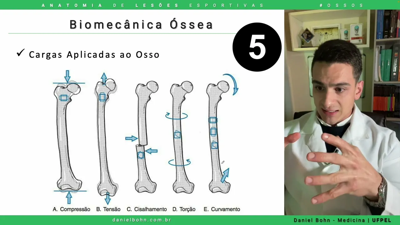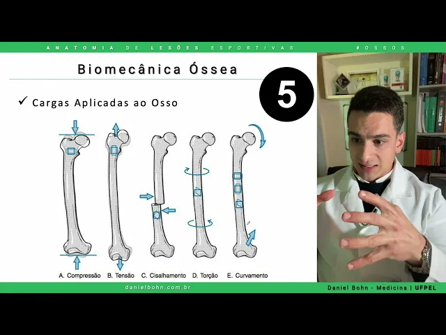 Então quer dizer que é mais por impactos mesmo não que aquela musculatura tá fraca ou tá tá fazendo aquela periostite reacional Resumindo Então a nossa aula a gente viu as propriedades principais do osso a gente viu que as cinco forças compressão tensão cisale momento curva curvamento né e a gente entendeu que na verdade as lesões elas são uma combinação dessas essas forças e ainda também Vimos que elas podem causar fraturas por estresse assim como qualquer outra fratura porque tem a magnitude envolvida a duração e também a o número de eventos né a repetição e aqui