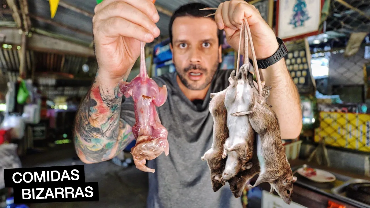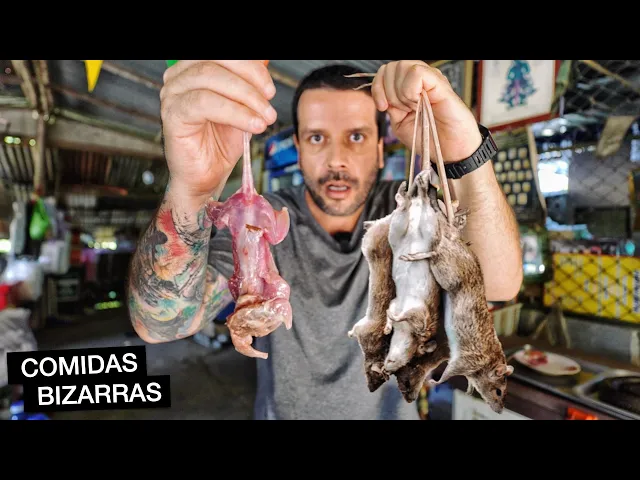tava com tempero especial então se você não assistiu as nossas experiências naquele país eu sugiro que depois que você assistir esse vídeo você maratone porque tem muita comida exótica muita comida diferente naquele canto do mundo Vamos ver se esse Ratinho tá gostoso meu rato frito tailandês Hum Tem muito osso Nossa mas tá muito gostoso rapaz a pele tá extremamente crocante salgadinha tudo que é frito é gostoso né Tá lembrando hum um bom pedaço de frango porém com um sabor mais adocicado o gosto é diferente do que eu provei no Cambodia completamente diferente que delícia ISO