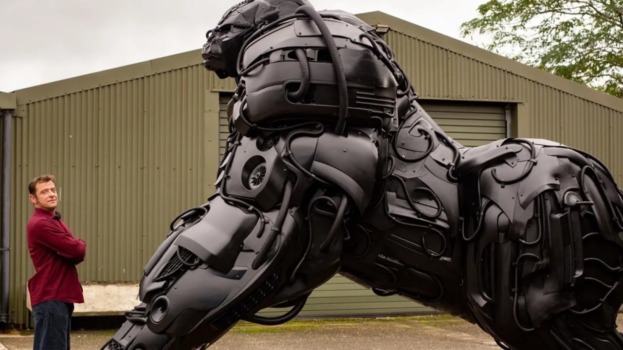 This was made from old cars to highlight climate issues. It's brilliant, but ironic that AI is a far greater threat with a tiny fraction of the resources tackling it. So this is Google's new AI, and I'm only allowed to talk to it about dogs.