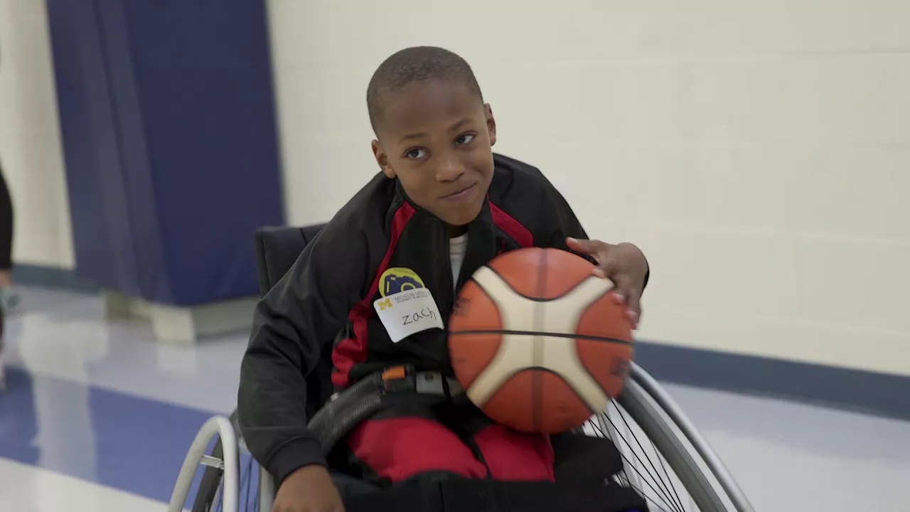 [Music] you ready set today we're here for the first ever mock wheelchair basketball clinic where we've invited patients and community members in Ann Arbor area it doesn't matter whether or not you use a wheelchair on an everyday basis if you have some sort of physical challenge or limitation that stops you from playing able-bodied basketball you are eligible to play wheelchair basketball it's amazing how much fun it is for a child just to weave in between cones and they're taking it and they're maneuvering in a ways they never did before and they're feeling this independence that