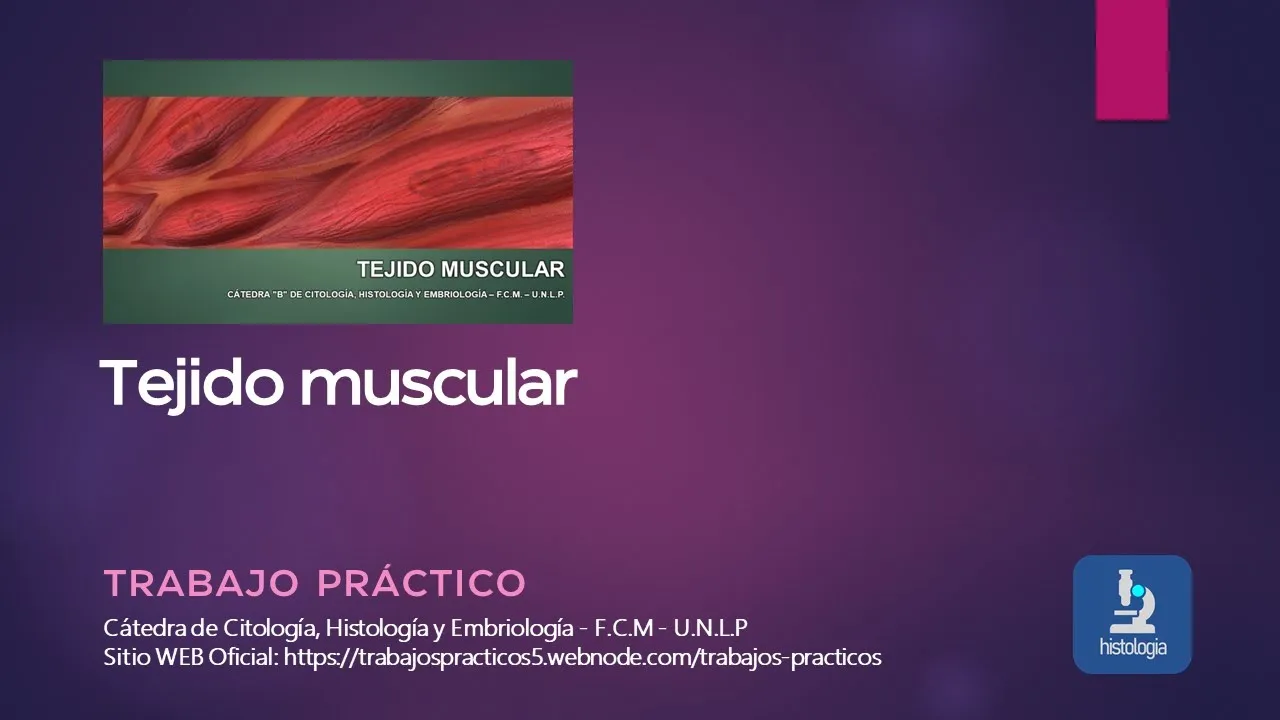 en este práctico vamos a hablar de tejido muscular uno de los cuatro tejidos básicos del órgano veamos algunas características distintivas del tejido ocular este tejido está constituido por células alargadas que se denominan fibras musculares o miocitos las fibras musculares o milloncitos se reúnen en ases o fascículos y las fibras fascículos oculares son acompañados por tejido conectivo vasos sanguíneos y nervios el tejido muscular tiene en su cargo el movimiento corporal y visceral genera movimiento al contraerse o extenderse lo que se denomina la contracción y relajación y al contraerse acorta su longitud como efecto de la estimulación