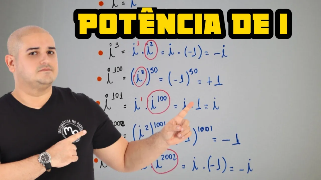 Vem aprender do jeitinho cai na prova Vem aprender com matemática no papel Olá pessoal hoje a nossa vídeo aula vamos falar sobre potências de ir se você quiser saber tudo sobre inúmeros complexos maratona que você vai ficar crack mas aqui Professor Sem enrolação me explica esse negócio de potências de ir gente só lembrando e é unidade imaginária e esse i é igual a raiz quadrada de -1 gente uma consequência disso é que e ao quadrado é igual a -1 e a gente vai usar bastante isso aqui ó e ao quadrado é igual a -1 vamos