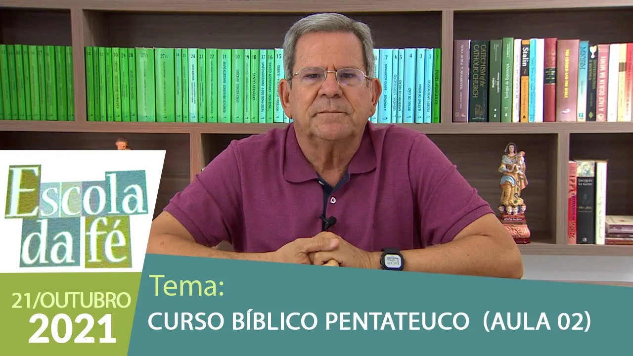 [Música] meus caros amigos e amigas uma alegria nós estarmos juntos mais uma vez com a graça de Deus podemos começar mais um programa Escola da Fé e vamos continuar com o nosso Curso Bíblico já fizemos uma primeira aula uma introdução e hoje vamos começar né com o estudo do pentateucos cinco primeiros livros da Bíblia Gênesis êxodos número lítico e Deuteronômio Ok vamos pedir ao Senhor que nos dê a sua graça e a sua bênção para essa nossa aula de hoje em nome do pai do filho e do Espírito Santo amém Vinde Espírito Santo enchei os corações dos vossos fiéis acendei em nós o fogo do Vosso amor enviai Senhor o teu santo espírito e tudo será criado renovareis a face da terra ó Deus que instruístes os corações dos vossos fiéis com a luz do espírito santo fazei que apreciemos retamente todas as coisas segundo o mesmo espírito e gozem sempre da sua Consolação por Cristo nosso senhor amém pedindo à Virgem Maria que interceda por nós nesta hora Ave Maria cheia de graça o senhor é convosco bendita sois vós entre as mulheres bendito é o fruto do vosso ventre Jesus santaia mãe de Deus rogai por nós pecadores agora e na hora de nossa morte amém Glória ao pai e ao filho e ao Espírito Santo como era no princípio agora e sempre amém São José rogai por nós em nome do pai e do filho e do Espírito Santo amém toda a Escola da Fé deve sempre começar com uma oração né lembrando aquilo que Jesus disse né Sem nada podeis fazer né então para a gente não fazer como aqueles Apóstolos que pescaram a noite inteira e não pegaram nada né pedir a graça de Deus muito bem eu quero lembrar que se você quiser rever este programa ou algum outro que você não tenha assistido é só você acessar aí YouTube. com né e bar Play cancel noova youtube. com barcel noova e você confere na nossa playlist né O que você quer assistir Tá certo você pode comunicar conosco temos o telefone bem conhecido da canção nova que hoje também é WhatsApp o 1231 86 2600 e temos também o e-mail do programa escolada Fé @can noa.