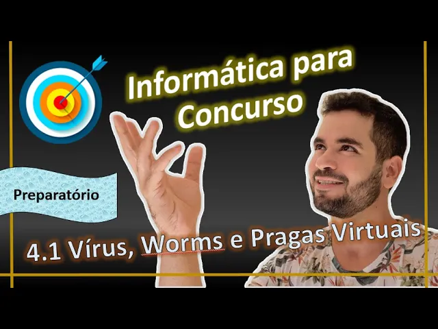 Oi e aí galera tudo bem com vocês sejam bem-vindos a mais uma vídeo aula a gente tá falando aqui do conteúdo programático da área de informática e na aula de hoje a gente vai estar falando do item 4.1 que vocês estão vendo aqui na tela tá gente vai falar de vírus Worms e pragas virtuais em outras palavras a gente vai tá falando de códigos maliciosos tá na próxima aula a gente vai falar de antivírus de Firewall e de antispyware que são os programas que visam proteger todo o sistema computacional de histórias maliciosos que a gente