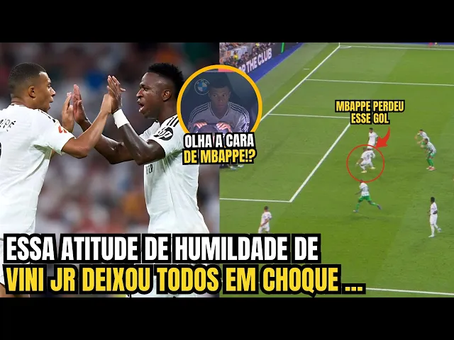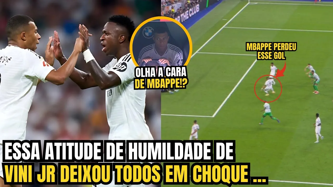 o Real Madrid ganhou do Real bets por 2 a 0 mas uma atitude de Vinícius Júnior com mbappé levou muitos torcedores à loucura uns criticando o brasileiro outros apoiando a humildade de Vini Então fique no vídeo que eu quero saber sua opinião sobre essa polêmica e claro eu já vou pedir para você deixar um like no vídeo se inscrever no canal e ativar o Sininho para receber nossos vídeos todos os dias kyan mbappé enfim desencantou em La Liga E foi neste domingo em duelo contra o Real Bees no santiago bernabel pela quarta rodada com dois