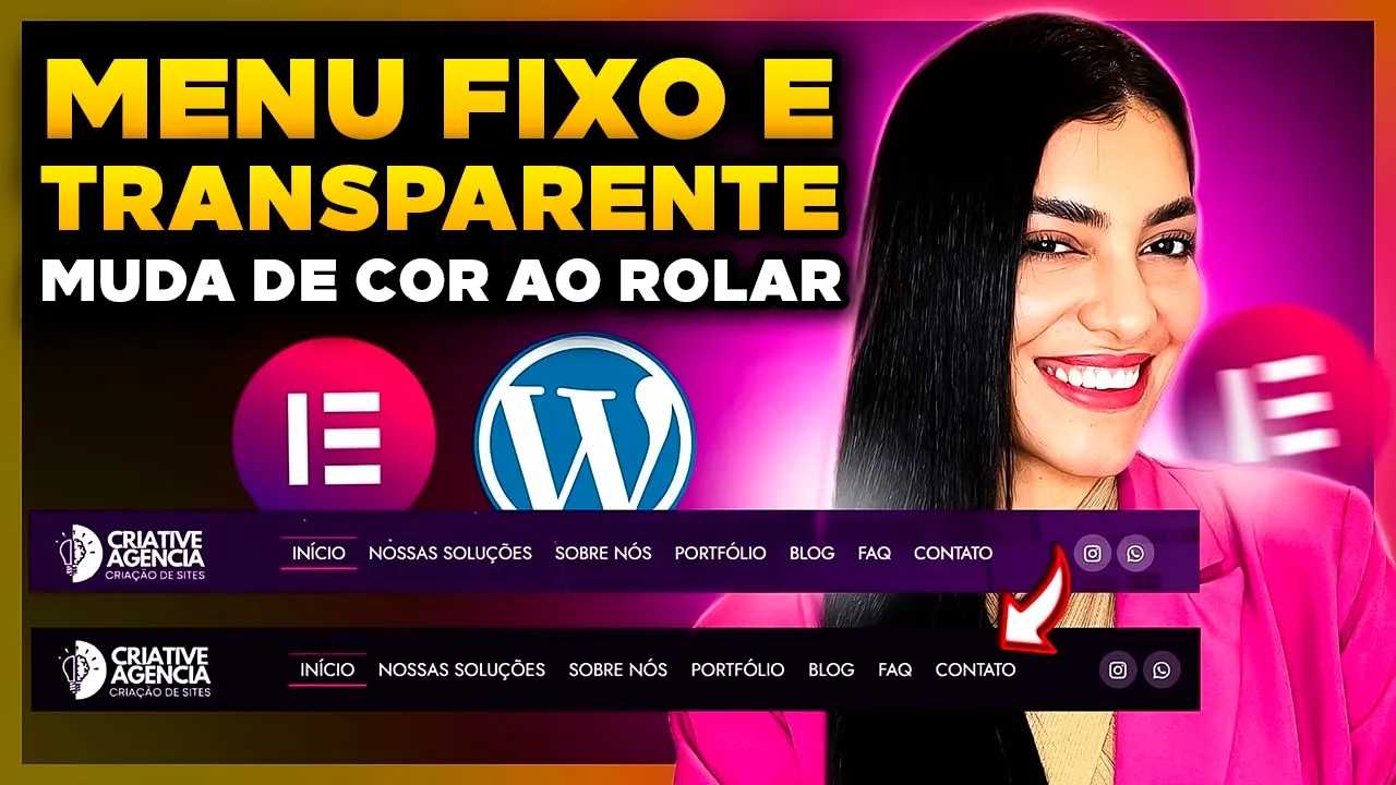 br ou clicar no link da descrição pessoal eu já tenho um menu desta maneira feito aqui né ele fica transparente aqui em cima do banner e aí na hora que a gente rola a tela ele muda de cor mas eu desativei ele e aí sem o menu ele fica assim né com as configurações padrões do tema e vou te ensinar a criar aqui eu vou ensinar a criar todo o menu tá se você quiser ver só a parte de como deixar transparente aí você avança um pouco mais o vídeo mas eu vou ensinar a criar o menu todo então a primeira coisa que você tem que fazer é criar os links que a gente realmente chama de menu porque aqui no Brasil a gente se habituou a chamar tudo isso aqui de menu mas na verdade o nome é cabeçalho menu são só esses links aqui que a gente clica mas o conjunto de tudo aqui a arte a logo e esse espaço chama cabeçalho então o menu que são aqueles links você precisa criar aqui dentro do WordPress na parte de aparências menus se você não tiver criado nenhum vai aparecer aqui para você criar um novo menu e aí você dá um nome vou colocar menu principal dois aqui porque eu já tinha criado outro e aí você clica aqui em criar menu aí aqui você vem em páginas clica aqui em ver tudo e seleciona todas as páginas que você quer eu vou colocar só a página de início porque os outros links eu vou criar com links âncoras então você seleciona aqui todas as páginas que você quer clica aqui em adicionar o menu e aí aqui que você vai criando aqueles links como os meus eu quero como links âncoras link âncora é assim quando você clica ele não carrega uma nova página ele te leva para um lugar aqui da mesma página que você está vendo tá vendo ele faz uma âncora para lá então quando a gente quer isso a gente vem aqui vem em links personalizados aqui a gente coloca a URL né da página que a gente quer que no meu caso é essa daqui e aí depois da barrinha a gente coloca hashtag e um ID que é um textinho que vai simbolizar aquela sessão esse aqui eu vou fazer para a página de soluções então vou colocar aqui #soluções pra página não para sessão de soluções né e aí você se atende porque não pode ter letras maiúsculas não pode ter pontuações tá então vou escrever aqui sim você pode colocar escrito normal aqui no no texto soluções aí você clica adiciona o menu o próximo eu vou fazer a mesma coisa vou colocar aqui hashtag sobre nós e aqui embaixo vai escrever sobre nós adicionar o menu vou fazer também o de portfólio adicionar o menu vou fazer também o de faq e vou fazer também o de contato vou clicar em adicionar o menu e aqui ó se você quiser você pode mudar a organização colocar um depois um antes eu vou deixar o meu assim início, soluções, sobre nós, portfóli,o faq eu vou clicar aqui em salvar menu pronto se você marcar aqui cabeçalho ele já começa a aparecer aqui em cima tá vendo só que sem nenhuma edição não precisa marcar tá tô só te explicando aqui que tanto faz porque como a gente vai fazer com o elemento ele vai substituir aí agora sim a gente criou o nosso menu que são esses links agora a gente vai criar o cabeçalho que é essa arte aqui que a gente faz para poder colocar todas as informações para criar o cabeçalho lembrando que eu estou usando aqui nesse tutorial Elementor Pro tá se você quiser fazer isso com Elementor Free o Elementor gratuito tem outro vídeo aqui no canal te ensinando só isso esse aqui é só se você tiver o Elementor Pro se você ainda não adquiriu o Elementor Pro nós temos um link aqui na descrição que é o nosso link de afiliado e parceiro do Elementor se você comprar com nosso link você nos ajuda a trazer mais conteúdo relevante para você aqui no canal é para criar esse modelo você vai vir aqui em modelos adicionar novo vai selecionar a opção de cabeçalho ou então de header se o seu tiver escrito em inglês vai dar um nome aqui pro seu menu eu vou colocar menu principal dois só porque eu já tenho um outro aqui vou clicar em criar modelo aqui eles vão algumas opções se a gente quiser pegar eu não vou pegar vou clicar no X vou criar um do zero vou clicar aqui nesse sinal de mais vou clicar aqui em flexbox vou pegar um contêiner com a setinha pro lado vamos vir aqui em estilo vamos colocar aqui a cor de fundo que a gente quer que o menu fique depois que a gente rola a tela a transparência a gente vai fazer de outra maneira então a gente vai clicar aqui é você pode escolher uma cor aqui na caixinha ou se você já tiver cores configuradas você clica aqui no símbolo do Globo e escolhe eu vou pegar essa cor roxa que eu já tô usando aqui no projeto vou vir aqui na biblioteca vou arrastar o widget de logo para cá eu já tenho a logo do meu site configurado aqui se não tiver vai aparecer um botão aqui para você alterar ou para você adicionar você clica aqui e você consegue clicar aqui e arrastar uma imagem para cá para simbolizar a sua logo tá e aí fazendo assim quando você clicar ele já automaticamente pega o URL do site e você clica aqui vem aqui na biblioteca vou pegar o widget de menu do WordPress arrastar para cá depois vou voltar na biblioteca vou pegar o widget de redes sociais e vou arrastar para cá agora a gente vai configurar vou vir aqui no item de menu vou vir em estilo vou vir na cor vou pegar a cor branca vou vir aqui na tipografia vou deixar a fonte jost deixar a transformação maiúscula vou deixar tamanho 15 vou deixar peso 400 e aqui no espaçamento horizontal a gente vai diminuir um pouco de modo que não quebre a linha vamos ajustar aqui também nosso lou vou clicar aqui vou vir em estilo vou vir em largura vou diminuir um pouco a largura dela vou vir aqui nos itens de redes sociais vou vir aqui em arredondamento vou deixar em círculo vou vir aqui em estilo vou tirar de cor vou deixar em personalizado a cor primária é a cor de fora a cor secundária é essa cor de dentro dos ícones mesmos eu vou deixar a cor secun