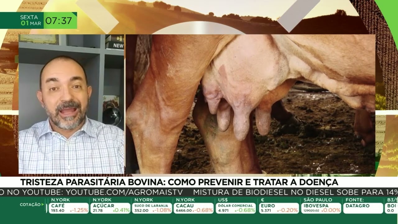 e aí e aí a tristeza parasitária bovina é o nome vulgar de duas doenças que atacam principalmente bezerros são causados por dois agentes etiológicos a base que é um protozoário é na plasma que é uma repete os dois agentes o que eles fazem eles causa anemia no animal como que ele causa em mim ele destrói a márcia quando você tem destruição de hemácias você tem queda de oxigênio ação do animal então o que que o animal apresenta porque tem certeza o animal fica fraco ofegante falta de ar tão feliz ele fica muito quieto então por