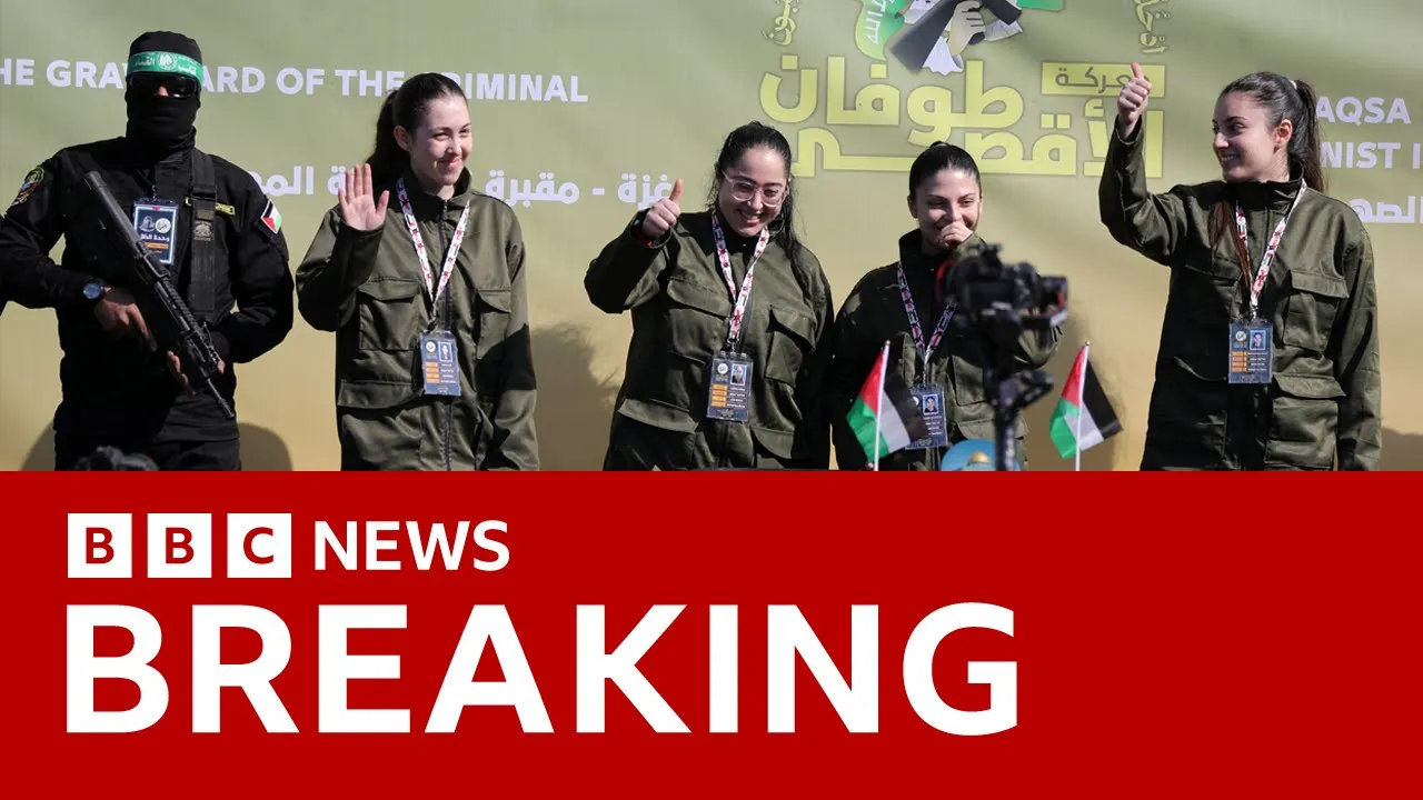 four Israeli soldiers have been released under the Gaza ceasefire deal I can now show you those pictures again of that moment where they were walked out uh by those herass Fighters and they were then taken onto a stage and the four who are Karen arv 20 years old Daniela gilboa who's also 20 Nama Levy who is 20 and liri alag who is now 19 were taken by those Hamas Fighters which is they were dressed in uniforms as you can see this in Palestine Square in Gaza City where we had seen building up a number of
