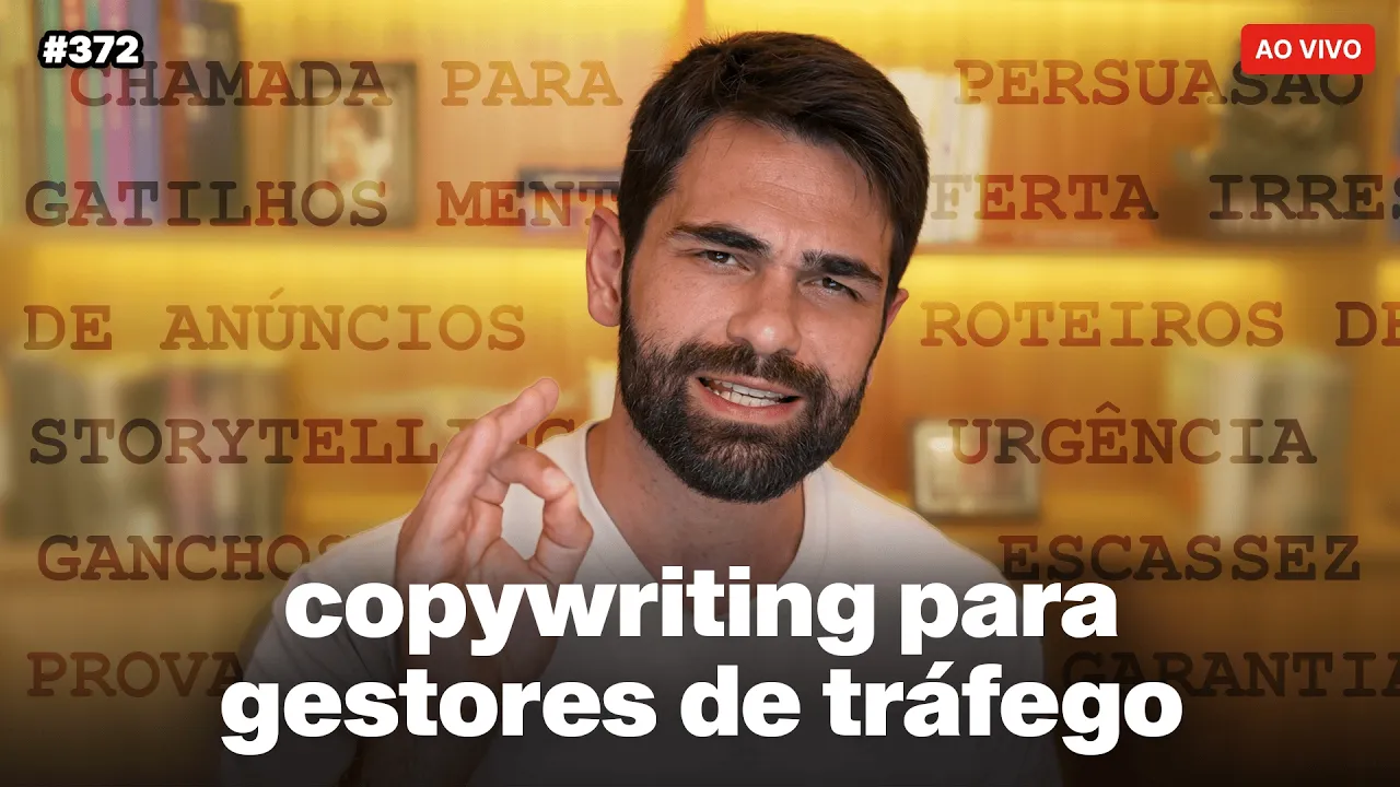 Meu Deus, que nervoso que eu tava passando aqui. Estamos ao vivo. Bem-vindos, bem-vindos à nossa live número 372. Hoje, senhoras e senhores, falaremos sobre copywriting para gestores de tráfego pago. E o que eu preparei para você aqui nessa aula vai deixar você assim, ó. Eu comecei a transmissão ao vivo aqui 4 minutos, 5 minutos atrasado. Comecei. A culpa foi minha? Provavelmente foi. Mas é porque hoje eu tinha duas opções com essa aula ao vivo. Eu poderia pegar o conteúdo de uma aula muito parecida com a que eu vou te dar hoje aqui e simplesmente copiar