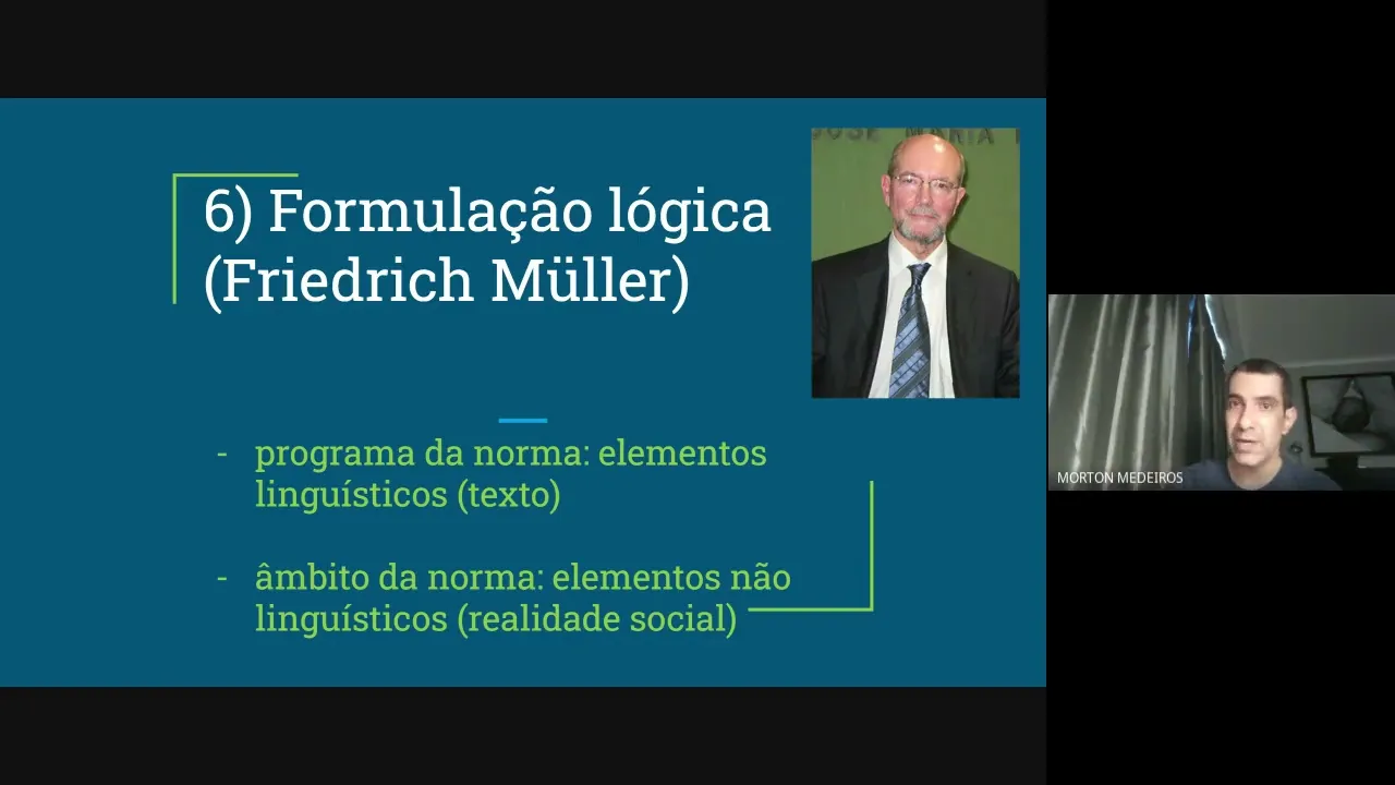 já viu né e deixa eu só ver aqui aqui Pass PR então isso aqui tudo gente já viu vimos tivemos o caso prático para vocês entenderem melhor em que consiste a distinção entre enunciado normativo e Norma Jurídica passamos por Kelen e agora chegamos a Miller Vai ter uma vai ter uma ideia de Norma Jurídica muito interessante porque eh se coaduna com aquela Nossa distinção que a gente faz entre Norma e enunciado normativo porque ele Ele defende que aquilo que a gente vê como texto e ele chama de programa da Norma vai revelar apenas uma parte