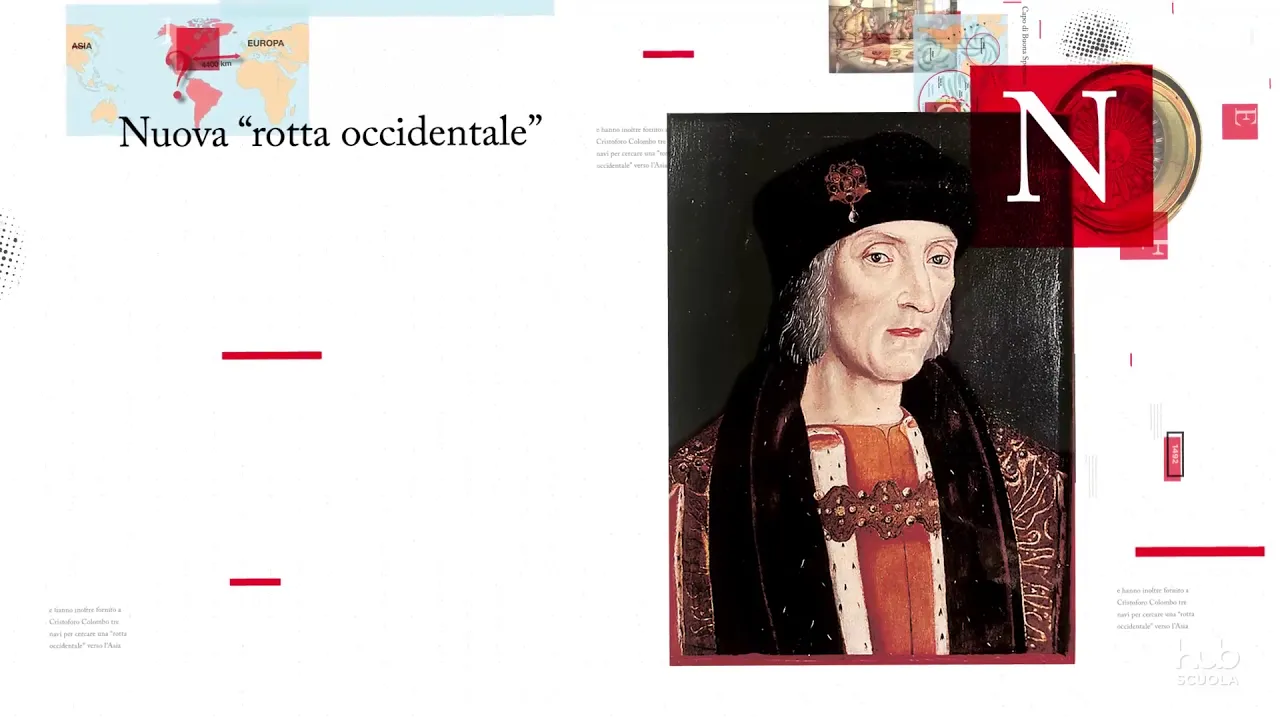 [Musica] nella prima metà del quindicesimo secolo enrico il navigatore progetta di circumnavigare l'africa per riuscire a raggiungere le indie ma non vedrà mai realizzato il suo sogno di una rotta orientale nel 1487 bartolomeo diaz approda a capo di buona speranza sarà vasco de gama dieci anni dopo a portare a termine l'impresa sognata da enrico in spagna qualche anno prima è il 1492 i sovrani ferdinando d'aragona e isabella di castiglia hanno cacciato gli arabi da granada in nome della limpieza de sangre e hanno inoltre fornito a cristoforo colombo tre navi per cercare una rotta occidentale verso