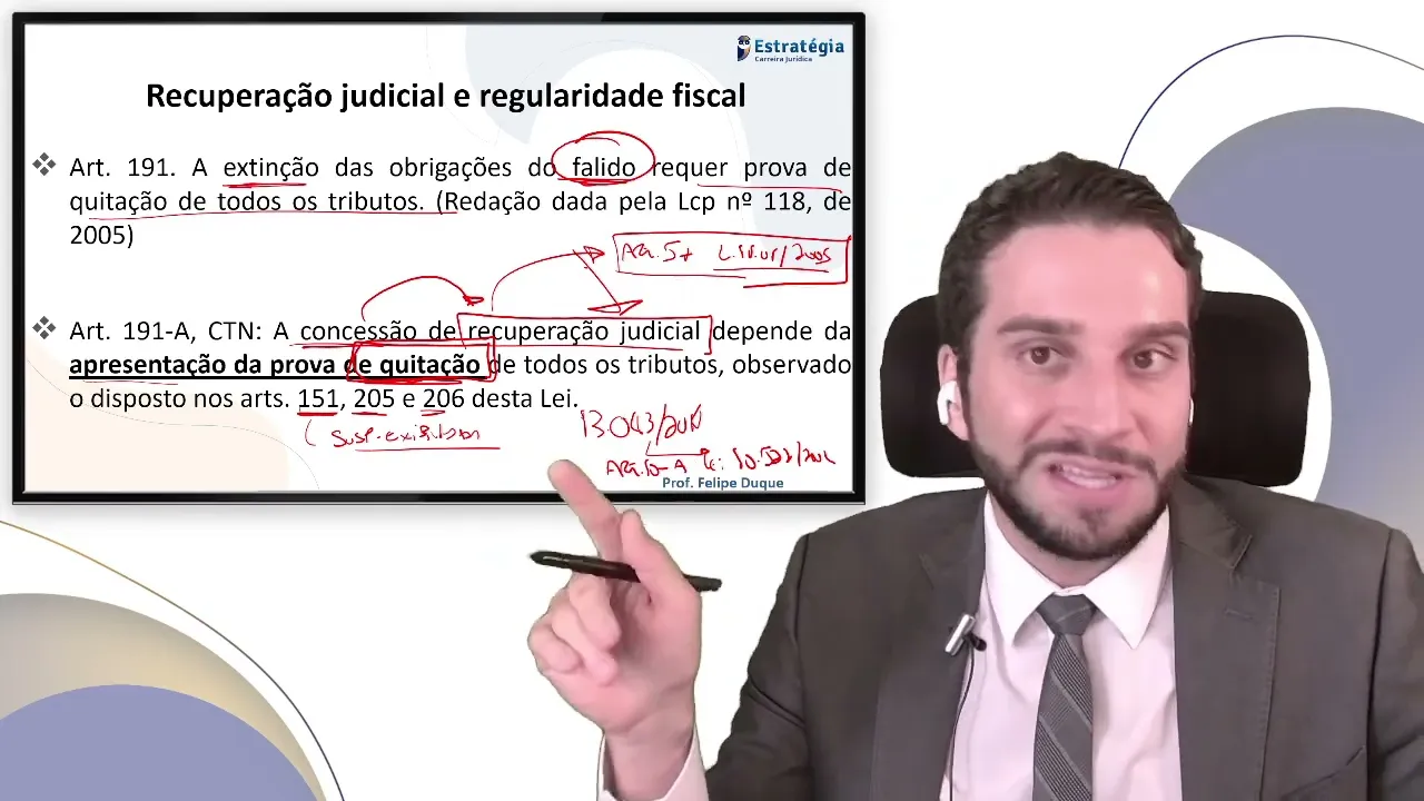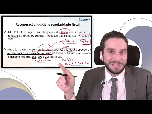 você fique certo modo dizendo né você nem diz que ele se aplica você faz Vista grossa finge que ele não tá lá e aí eu deixo aqui a profundamento essa reclamação 43 169 para que vocês possam ver Tá certo eu acho muito interessante assim é um julgado que ele é bem impactante ele trata sobre esse dispositivos do artigo 191 a do CTN beleza show de bola Professor outra coisa que pode ser interessante dá uma olhada no artigo 68 da lei 11101 de 2005 tá Dá uma olhada nisso aí você tem essas todas essas possibilidades para