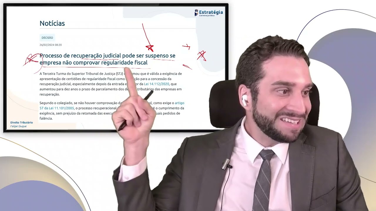 das empresas que tem recuperaç Imagina você vai comprar de empresa da recuperação vai falar você erda Tudo Para Trás Fala meu irmão eu não vou comprar por quê Porque eu vou levar um bocado de coisa pía que eu nem sei que existe então ela cria de certo modo uma sistematização uma facilitação para que isso possa acontecer beleza show de bola professor para ficar de maneira mais completa para mim só uma concatenação de temas do STJ trazer cinco aqui pelo menos para vocês tá aqui 1 2 3 4 5 para que você fique de olho envolvendo