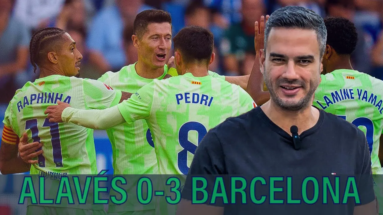 meu povo bom domingo para vocês hein a boa notícia é que o Barcelona aprontou de novo e a má notícia não tem cara não tem muito o que falar de ruim desse alav 0 Barcelona 3 foi mais um jogo que quando você olha no calendário para quem é de fora e não acompanha tanto la liga fala alaves que que o alaves vai fazer Jogar em Vitória normalmente é muito difícil os grandes normalmente ganham lá mas os grandes normalmente sofrem lá ganhar com três gols com 30 minutos e podia ter sido mais a sensação do Barcelona