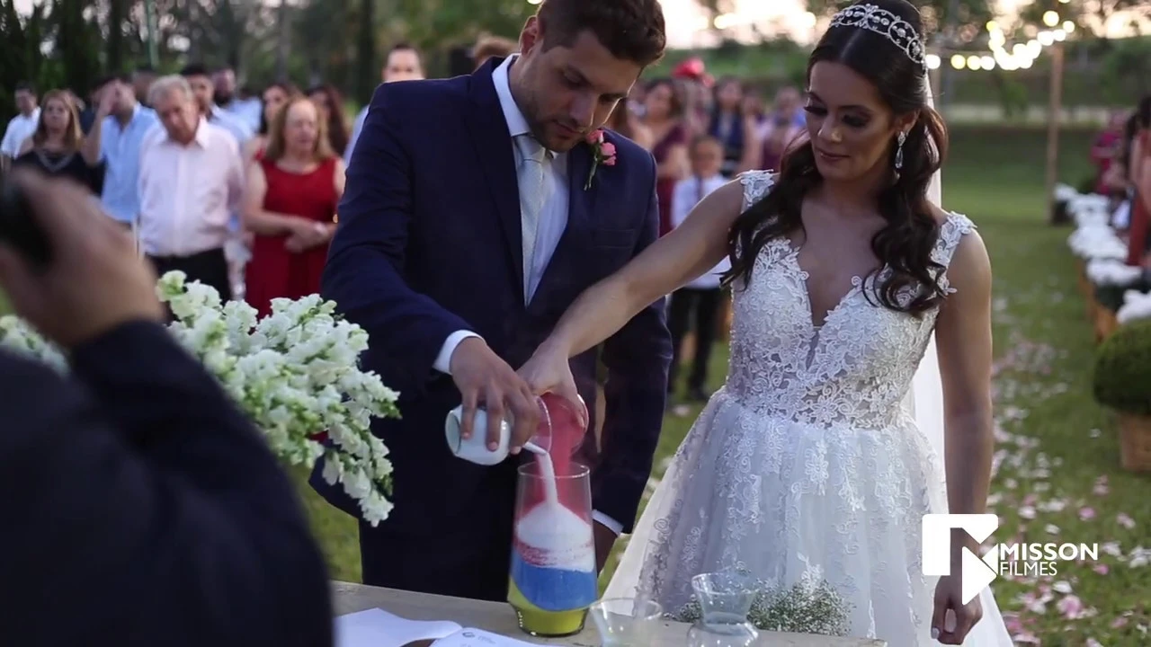 a cada grão de areia tem uma história e não por acaso nós temos aqui sobre a mesa hoje areias de cores diferentes cada grãozinho dessa areia carrega uma história vocês carregam uma história e histórias individuais que hoje se cruzam essas areias também vão se encontrar hoje assim como essas areias formam a base de um desenho que vai agora se formando nesse vaso a família foi a base de vocês as areias vão se misturando e vão formando um desenho que é o único assim como única é a história de vocês se nós tentarmos de novo nós
