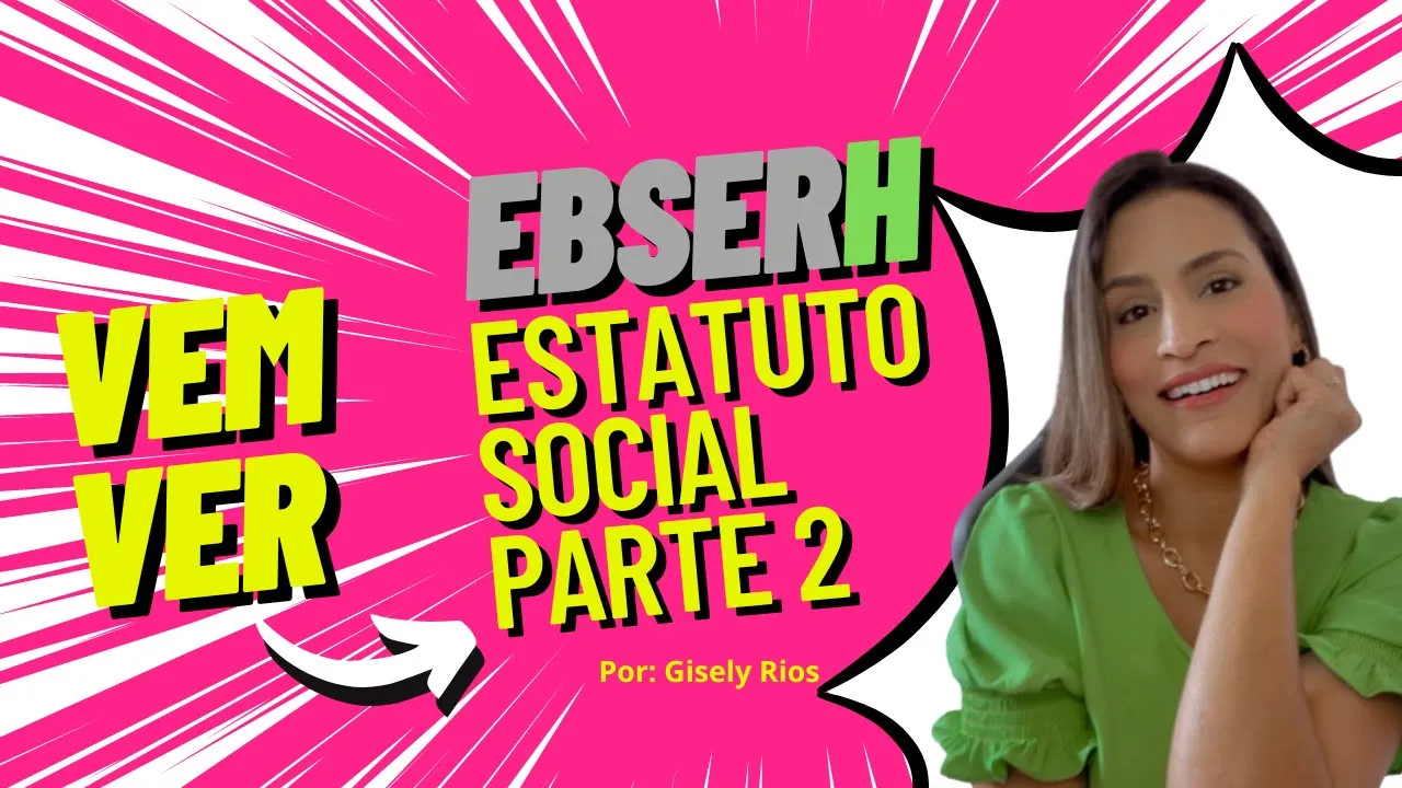 Olá gente estamos de volta aqui com o nosso projeto para que eu venha aqui explicar para vocês toda a legislação da ebserh que vai cair na sua prova no próximo concurso da ebserh agora nós já sabemos que está com previsão de edital para o segundo semestre agora de 2023 Então tá aí na eminência de ser lançado Então vamos estudar hoje a gente vai continuar aqui no nosso estatuto social Essa é a parte 2 desse conteúdo se você chegou primeiro aqui diretamente no meu canal por esse vídeo eu sugiro que você dê um pause acesse a