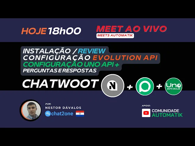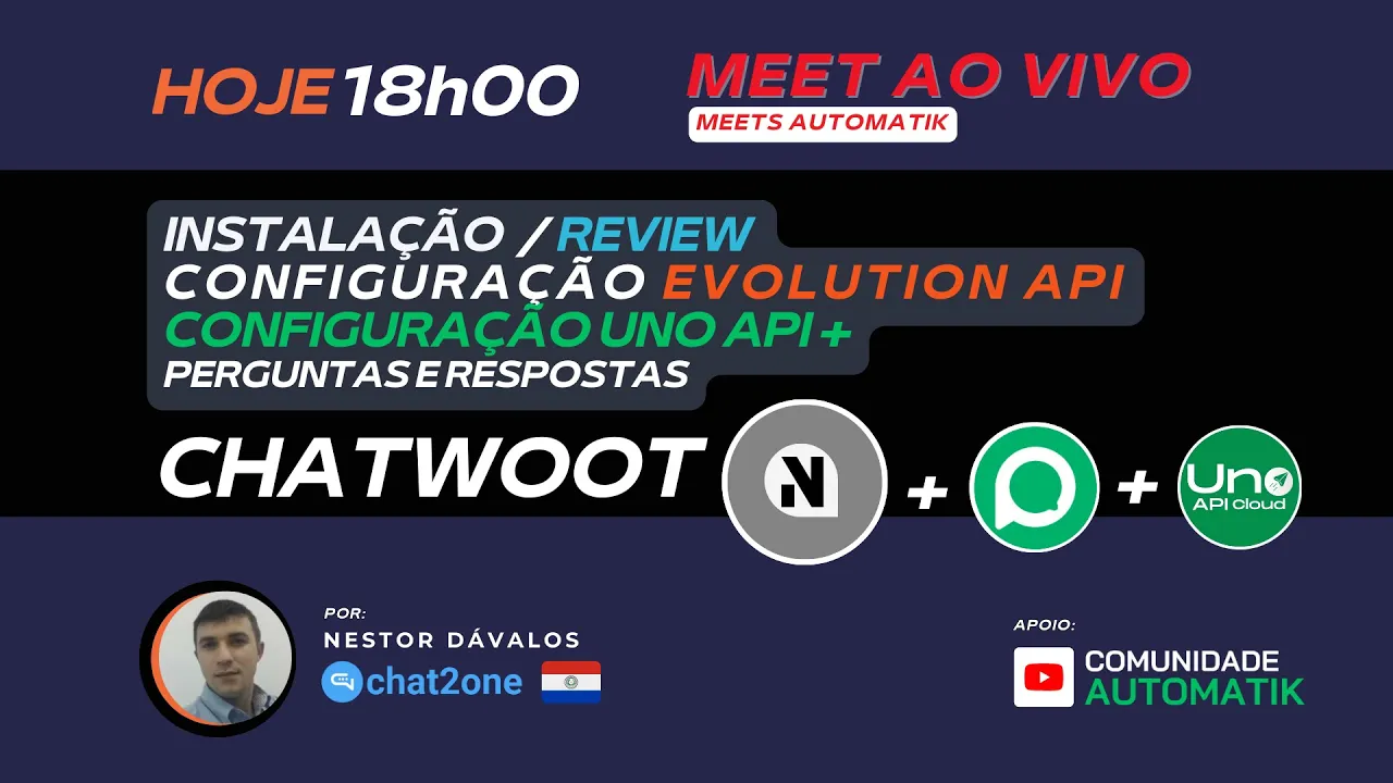 Tard amigos Ho de ver de conferir hoje dia 13 de maro de24 temos mais um pain colorid um Pain maravilhoso hoje nesta tarde relag de conteúdos na comunidade automatic umer receb muito obrigado por dedicar tempo da sua tard para nunca tard para dem aprender ento Bom sabermos que temos aquí 22 pessoas em plena plena quarta aquí 18 horas para aprender né nessa tarde está ancor conteúdo dos nossos mestres da Comunidade automatic ten honra eu ten a honra de verdade de apresentar nesta tarde pros senores nvos de Paraguay que apresentar conteo instala review Configura Evolution Api
