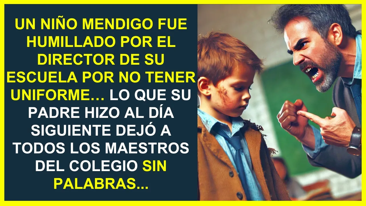 Un niño mendigo fue humillado por el director de su escuela Por no tener uniforme lo que su padre hizo al día siguiente dejó a todos los maestros sin palabras Kevin Johnson nunca había visto un lugar tan imponente como richwood Academy los grandes edificios de ladrillo rojo rodeados de jardines perfectamente cuidados y rodeados por altas verjas de hierro parecían sacados de una postal las torres con grandes Ventanales reflejaban la luz del sol creando destellos que le recordaban lo lejos que estaba de su humilde vecindario mientras bajaba del destartalado autobús con su vieja mochila al hombro notó