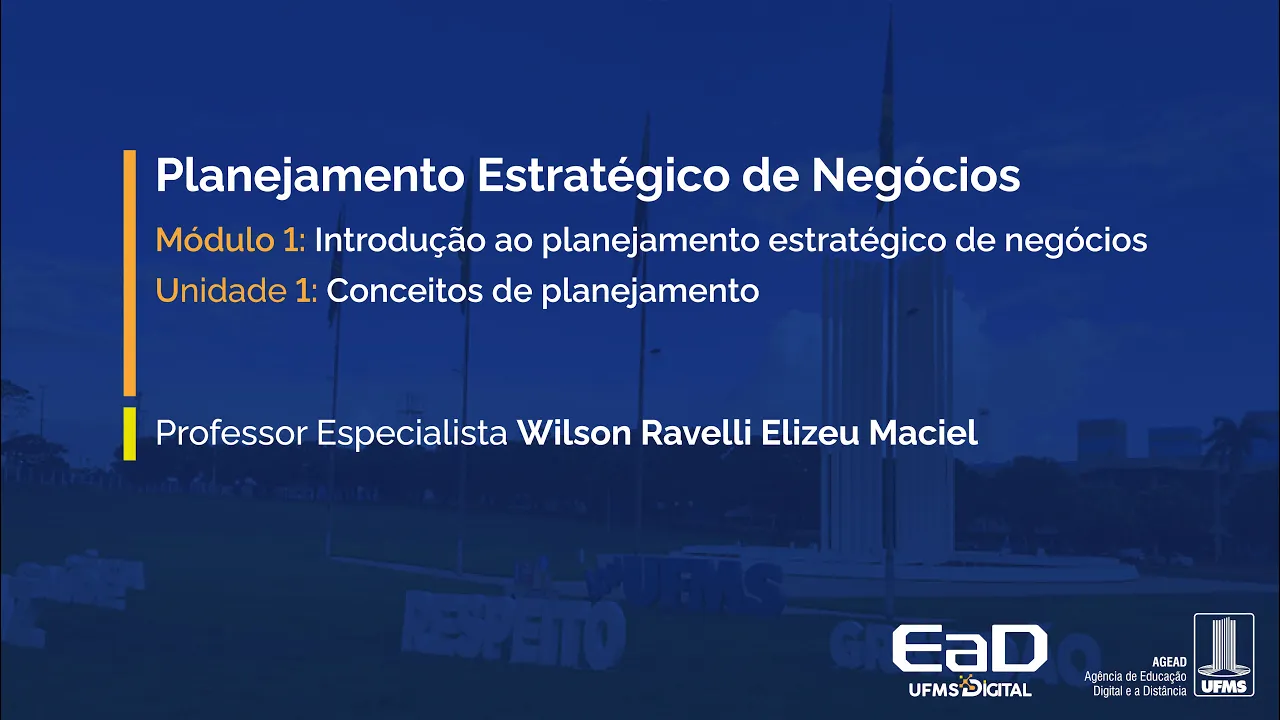 [Música] Olá alunos sejam muito bem-vindos a essa nossa disciplina de planejamento estratégico de negócios nela trataremos os assuntos da primeira unidade denominada conceitos de planejamento que é dentro do módulo 1 que trata da introdução ao planejamento estratégico de negócios nessa aula vamos tratar de alguns temas fundamentais para pensarmos de uma forma mais estratégicamente nos negócios e na gestão desses negócios Vamos aprender ao longo desse caminho né Principalmente dessa primeira aula e também da disciplina a importância da aplicação metodológica do planejamento nas nossas ações Principalmente as ações de gestão nós veremos então nessa aula um pouco