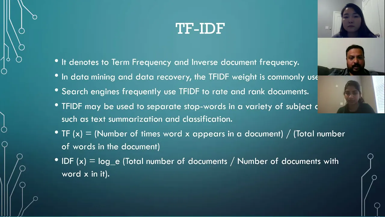 hello professor and everyone first of all we would like to thank our professor thank you for giving us an opportunity to be in his research class uh for our final research project we have chosen this uh detecting fake news on social media as our topic and this is a team project so as a teammate i have juris joes and sanjin already in my team and now let's talk about our project so in our project we have this uh we have covered this content uh we have included the introduction and major problems of this um fake news the purpose of creating this application and architecture methodologies technique we have used result we got and the conclusion and we have also included all the reference that we use for our project so as we all know that fake news exists way before from social media but it multifolds when social media was introduced fake news is a news uh designed to daily uh spread hoax propaganda and disinformation fake news uh story is usually spread through social media sites like facebook twitter etc uh as we all know that uh social media is used for news reading nowadays and before in the past only professional used to collect the news and publish it but nowadays anyone can collect the news and publish therefore the authentic uh authenticity of the news is difficult to know and uh it is difficult uh to know because uh there are also increasing number of fraud website in the internet which increases the number of fake news articles day by day as as compared to the past and uh peoples are profiting by the clickbaits and publishing fake news and online more clicks contributes to more money for content publisher so the major problem is by clicking on the clickbait user are lead to a page that contains the false information and false news and information influence the people's perceptions therefore the rise of this fake news has become a global problem that even a major tech companies like facebook and google are struggling to solve it can be difficult to determine whether a text is factual without additional context and human judgment so the purpose of our project is to develop a method for detecting and classifying the fake news stories using natural language processing and the main goal is to identify the fake news which is a classic text classification issue we gathered our data pre-process the text and translated our articles into a supervised model features our goal is to develop a model that classifies a given news article as either a fake or true so the daily mail their limitation we have faced is like our system does not guarantee 100 accuracy the system is unable to test the data that is uh unrelated to the training data set and uh there are usually two types of uh fake news like visual based and linguistic based type visual based are like photoshop images and videos which are posted in the social medias and linguistic days are mainly the manipulation of text and string content this issue is with blog news or emails now my friend sanjina will continue hello all in this project we propose a machine learning model to identify whether a news article is fake or not based on its content we used nlp to detect the fake news there are several attempts made to use artificial intelligence technologies specifically machine learning techniques and nlp to detect fake news and stop it from spreading as human beings we can read a sentence or a paragraph we can interpret the words with the whole document and understand the context given today's volume of news it is possible to teach a computer how to read and understand the difference between real news and fake news using nlp in this project the main building blocks are data set and machine learning algorithms we got our data set from kegel website where data is published for research purposes our data set consists of seven and seven thousand seven ninety six rows and four columns the first column is unique id the second column title give means the headline of the news and the third column text is the description of the news our data is pre-labeled with fake and real news as fake and real so we have two classes to our data fake and real and initially we use the 30 percent of the data for training the machine learning model and remaining data to test a model that is trained um now coming to the workflow of our model our machine learning process consists of the following steps once first we load the data set once the data set is loaded we need to pre-process the data set by cleaning the text applying some tokenization techniques removing stop words and drop the duplicate words so once we have this set of pre-processed data articles we need to represent them into a numeric format we call this step as vectorization where we extract the future next step is to build a classification model uh from the extracted data and test and evaluate the model in order to predict the outputs of the unlabeled data so to analyze the mod to analyze and model the text after it has been extracted it must first be converted to features techniques we use to convert the data to a number format is tf idf validity of idf vectorization which is term frequency and identity term frequency we use the classifiers like passive aggressive classifier and k-nearest neighbor classifier to train and test the data train the model needs to be tested and evaluated for accuracy on data that it was trained on so after training the data we calculate the accuracy and we compare the accuracy of the two models uh k n and p a to select the best classifier for building our model according to the accuracy of the classifier while predicting on the tester data so we verified accuracy of our two models using confusion matrix next our friend joris will explain the techniques we used in our model here we ah hi professor uh here we used the techniques uh tf idf uh tf is the basis for the pa algorithm uh that is a inverse document frequency that uh tfidf uh the uh the the accuracy is showing here tp plus 