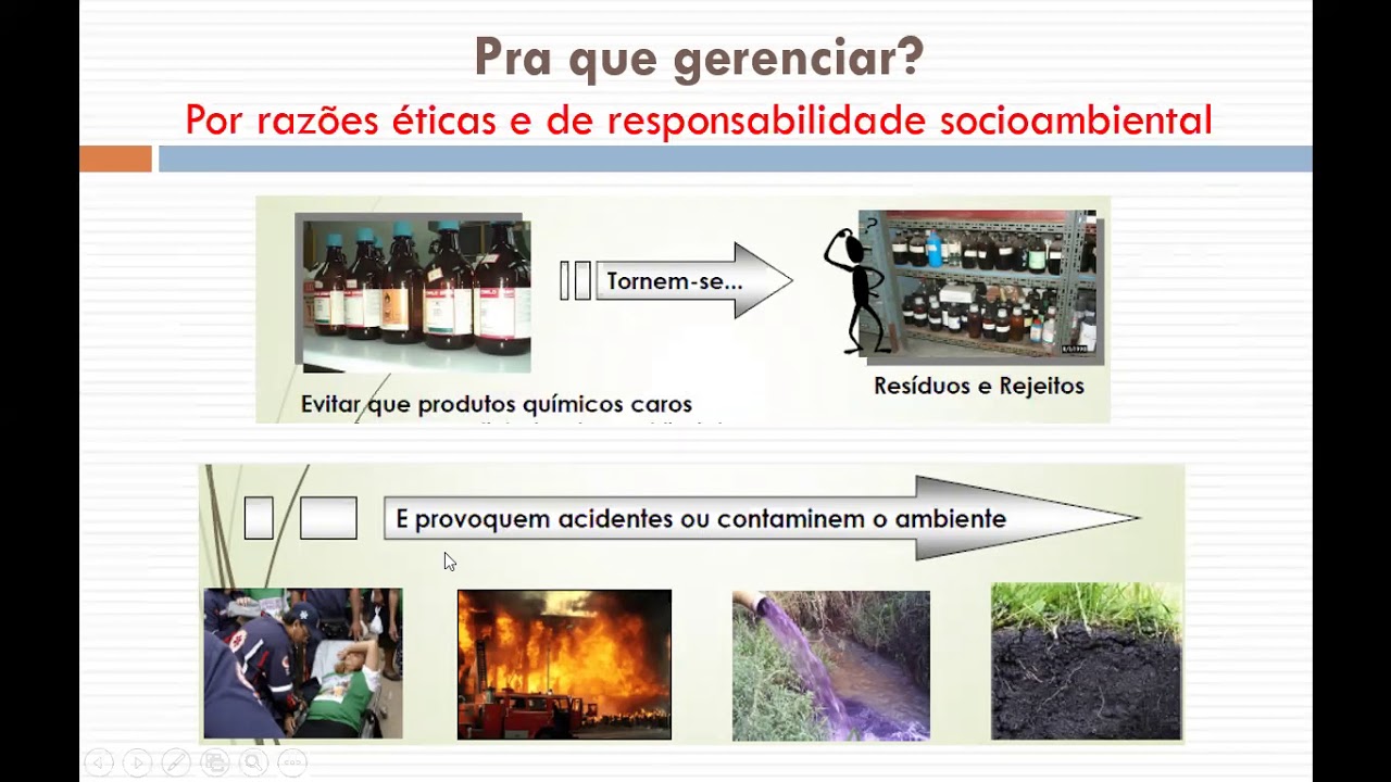 unidades também é recomendável que nós tenhamos em cada laboratório um técnico responsável pela implantação desse programa na unidade geradora Além disso é necessário que tenhamos um técnico em química ou alguém que tenha conhecimento em química para participar dessa comissão e das decisões em função da Necessidade que esse tema [Música] [Aplausos] demanda inventários para iniciar o programa de gerenciamento de resíduos de laboratório é preciso que seja elaborado um inventário do passivo com os resíduos existentes em cada laboratório contendo informações como composição e quantidade também é necessário fazer um inventário dos pontos geradores de resíduos químicos esse