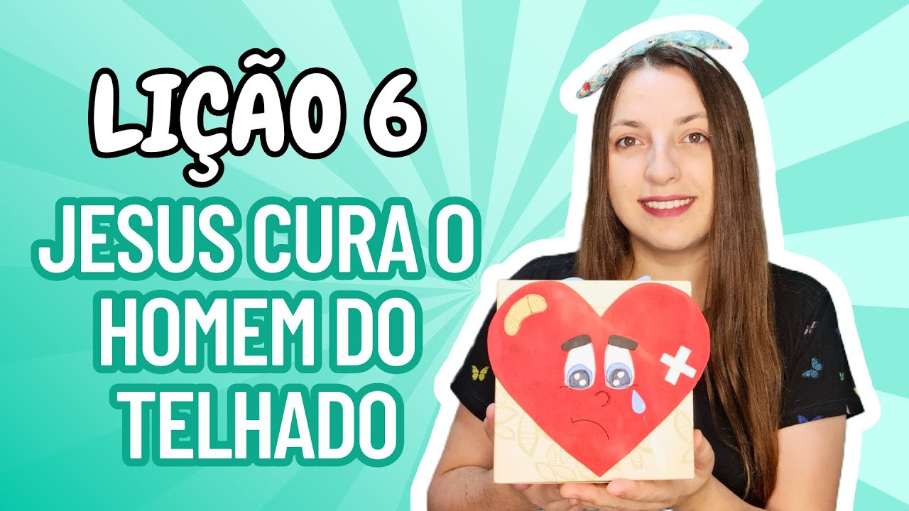 Apresente também o tema da aula de hoje, aula de número seis do jardim de infância. O tema é Jesus cura o homem do telhado. Mas ao invés de você já chegar anunciando esse tema, você pode fazer algumas perguntas para eles.