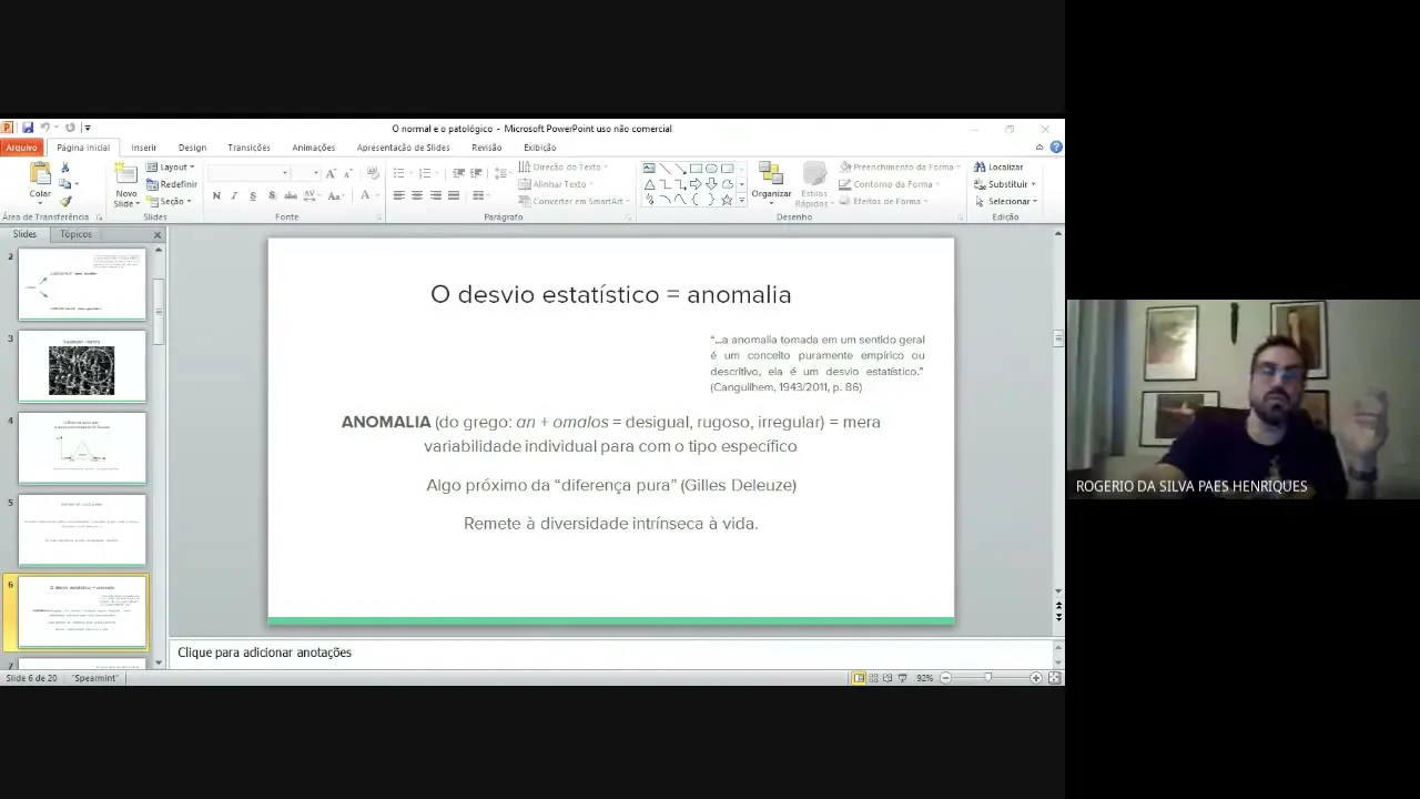 é e ele atribuía a isso por grafitada o tô aqui seria quase uma propriedade intrínseca ela tinha de ver o Whats variabilidade e Ah pois bem a bom então um bom então Manoel Cândido ainda pai oi pai o que que ele vai falar anomalia só é conhecida pela ciência se tivesse sido primeiro medida na consciência sobre a forma de obstáculos ao exercício das funções sob a forma de perturbação ou de mobilidade e com o quê que isso quer dizer né na página 149 retoma aspectos que condiciona para comentar um pouquinho mas é a patologia o