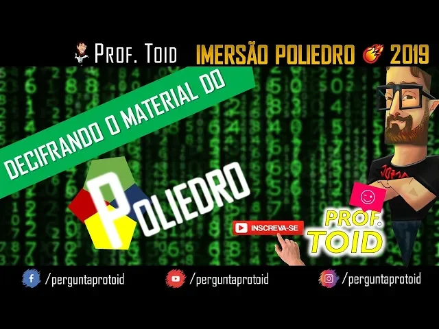 ola galera brasil com vocês pode na área vou começar aqui uma nova playlist galera decifrando o material do poliedro beleza galera então você aí que o material irmãos bom seguir aqui comigo eu vou fazer aula por aula vou resolver os exercícios porque este material ele é excelente pra muitos vestibulares do brasil então os meus parabéns para a equipe do poliedro e não quer dizer o fato de assistir essa aula vai te isentar de adquirir o material ou vai te isentar de repente de fazer o cursinho presencial galera na verdade isso aqui é só uma ferramenta