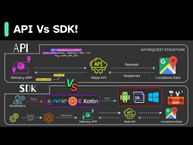 modern apps are incredibly complex they need to process payments send notifications and show maps and that's just the beginning building all these features from scratch would take years that's where apis and sdks come in they are the essential tools that make a favorite apps work together seamlessly let's start with apis or application programming interfaces think of them as universal translators they let different software applications talk to each other instead of building everything from scratch developers can tap into specialized services that are already battle tested and reliable most modern API use what's called rest architecture it's