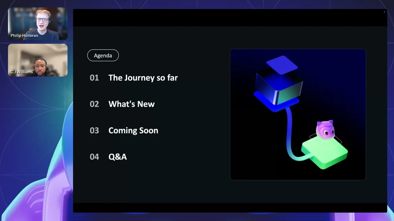 okay uh let's go ahead and get started what's going on everyone and thank you for being here welcome to the what's new with GitHub copilot webinar uh I'm pretty sure a lot of you are already familiar or at least curious about how AI is transforming the way that we work uh whether that's helping you with writing code solving for complex problems or maybe even generating a simple slack message uh but AI is changing faster every day and we know that choosing a tool of your choice can be difficult so by the end of the webinar what we want you to understand and walk away with is just a deeper understanding of what copilot can do and why we think it's a developer Choice uh for years to come my name is CJ Williams and I'm a product manager on the GitHub copil team and my name is Phil hollerin I'm the America's field CTO here at GitHub okay and today uh we're just going to walk you through a few things uh starting off with the journey so far so uh where co-pilot has uh began and where we're going uh what's coming soon and do a Q&A towards the end of the presentation but before we jump in we do have a few poll questions for the audience just to get a feel of uh what you guys are currently using yeah so uh first poll question that we're going to put on out here is how you are currently getting access to uh GitHub co-pilot just help us a little bit understand you know uh kind of our audience today so we can tailor the message a little bit as we go uh thanks everyone for responding to it as as you're able okay looks like Vats are coming in now pay for it my okay and we we could just kind of let those come on in as we go along too yeah yeah okay and are we moving on to the next one or let's see I think we're good okay so uh getting started let's jump back in So from the journey so far over two years ago uh there was the initial release of cod pilot which introduced autoc completion uh and if you aren't aware of autoc completion it allows you to generate multiple lines of code with just a simple prompt or comment within the editor this was a game Cher for developer productivity by giving you the ability to reduce time and that overall cognitive load on repetitive tasks and with that Improvement on productivity it allowed us to continue to enhance the developer experience uh by launching co-pilot chat this feature Improvement allowed developers to ask questions and gather context directly within the editor making a lot easier to collaborate and get help immediately transitioning to today our vision for GitHub Cod pilot is to create a ubiquitous conversational personalized and trusted assistant that's deeply integrated into the development environment this Vision has driven a lot of uh the announcements that we made within the past year starting off with improvements within the ID chat experience So within the ID chat experience we improve the model uh by allowing you to interact with your code and that's in G currently uh moving going on to copilot extensions which gives you customization within the editor that's currently in public preview and uh one other thing to mention is with co-pilot and command line which is in GA but it brings those capabilities into the terminal and lastly co-pilot on github. com which brings those co-pilot capabilities into the GitHub web interface so that's kind of what's happened the past year but you know this whole webinar is focused on what's new for co-pilot what are the things that we've recently released and then what are some of the things that we have coming in very short order so I'd like to take a little bit of time to talk about some of the exciting things that we've recently made available for co-pilot and specifically before we kind of get into that I want to think a little bit about how we think about co-pilot and how we think about kind of the overall process of AI coding kind of Shifting and changing development so for the past several years uh co-pilot has been a single model approach whether it's been GPT 35 turbo behind the autocomplete or more recently GPT 4 behind the GitHub chat capability and it's been really focused on this kind of conversational uh coding Paradigm where I chat with the chatbot I get some results back I integrate them into my code and that overall process has been kind of an AI infused process it's that standard development workflow that we've all been kind of working with in ide since the late 90s or early 2000s when that autocom complete framework came along but with just a little bit of kind of AI sprinkled into the top of that existing pattern what we see now and what we're building in is kind of a second phase of AI code generation the first part of that is that we transition from being a a single model approach to using multiple different models uh for the best appropriate task and then moving away from just a conversational code and then kind of copying and pasting that code over to having specific AI agents working in the codebase task with performing specific things and and really contributing more to that code this kind of shift from being single model and conversational to multimodel and agentic changes it from being an AI infused approach to really more of an AI native approach where we start thinking about what does the next phase of application development look like if we kind of jettison the notion of what uh kind of the traditional confines of an IDE are and we'll see a little bit more of that as we get into the what's coming portion of the webinar here in just a little bit but I did mentioned a switch to multimodel and one of the biggest announcements around that is that GitHub co-pilot now supports multiple different models uh for you specifically within GitHub co-pilot chat so that you can choose the best model for the uh task at hand so uh even though we are owned by Microsoft we do have a partnership with anthropics so that you can access Claude 3. 5 Sonet directly through GitHub co-pilot chat today as well as a