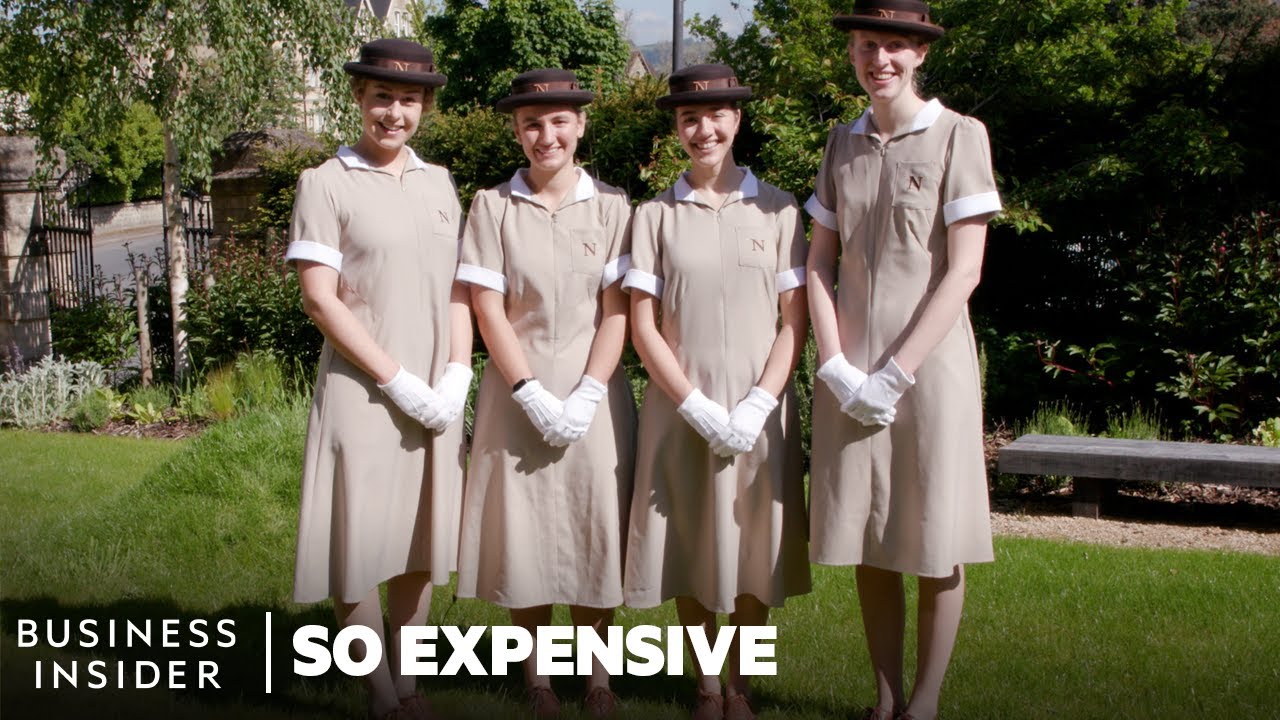 [Music] it's easy to feel like a time traveler here caught up in the picturesque beauty of bath just a couple hours outside of London and this reinforces it uniforms all perfectly worn a symol of discipline and that's the point this is Norland college for nannies and the Norland diploma is highly sought after internationally we have um extremely high-profile clients that's the tag tell off campus the students dress down for a nutrition class there's no craft dinner here it's all handmade more suited for the possible tastes of their future employers I think it's nice just for