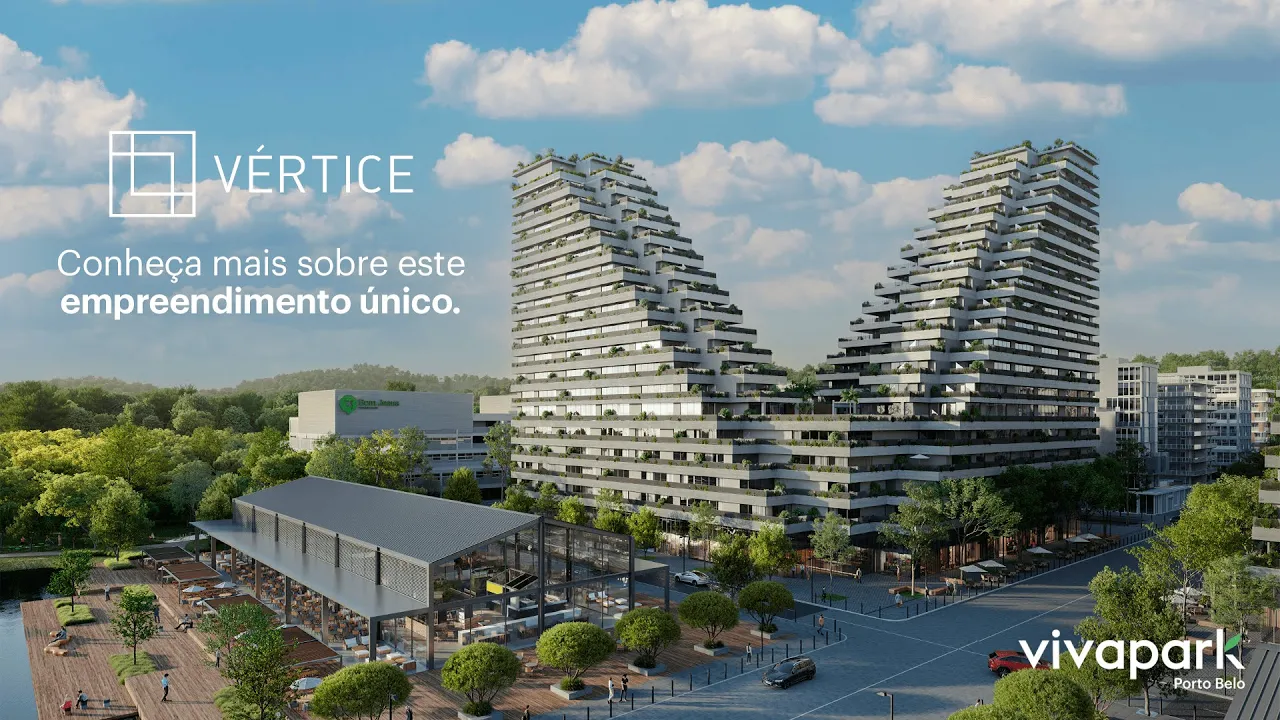 hoje eu vim apresentar para você o vértice empreendimento localizado no centro do Viva Parque você no centro de tudo o vértice é um empreendimento que é um ícone no Brasil sua arquitetura inspirada em Kopenhagen traz tendências mundiais para dentro do Viva Parque Porto Belo pensado para todos os estilos de vida Ele conta com o apartamento tipo estúdio uma ou duas suítes de 31 a 139 metros quadrados algumas unidades com piscina privativa no terraço para conectar negócios as pessoas e vontades as oportunidades o vértice também possui um Espaço Exclusivo com salas comerciais que integram o seu