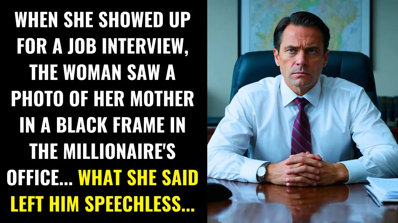 When she showed up for a job interview the woman saw a photo of her mother in a black frame in the Millionaire's office what she said left him speechless mine's alarm buzzed incessantly pulling her from a Restless sleep she blinked groggy at the small clock on her nightstand then let out a sigh another early morning another long day ahead as she shuffled out of bed she caught a glimpse of her grandmother's Room the door was slightly ajar and through the crack she could see the gentle rise and fall of her grandmother's frail chest the rhythmic