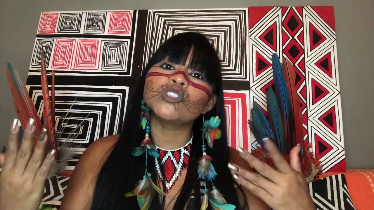E eu levo a linhagem do meu pai, que é a linhagem de onça. É como se fosse um sobrenome. Por isso vocês estão vendo essa pintura no meu rosto.