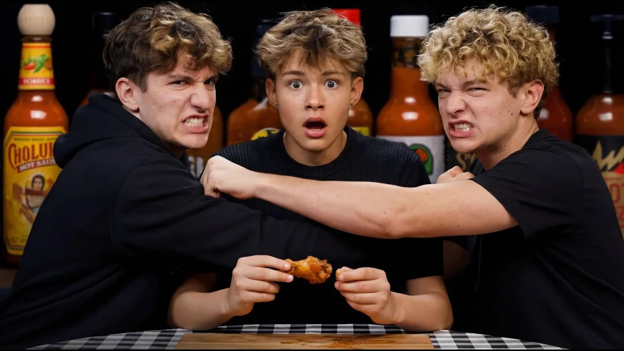 And that's when the craziest questions are going to be asked. So, someone's going to be reading out the questions to us, and if we refuse to answer the questions, we're going to be eating the spicy chicken wings >> and we got chocolate wings. And make sure to stay tuned to the end because the last question for all of us is going to be really intense.