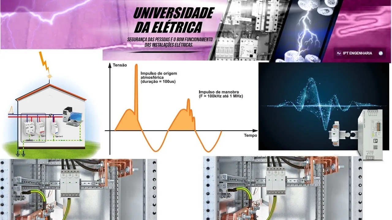 que para eliminar esses transitórios aqui olha que ocorrem que não são produzidos por descargas atmosféricas são produzidos pela concessionária o cargas indutivas e transitórios eles queimam os equipamentos então aqui já é um supressor de surto e transitório de alta performance então ele tem aí 20 a 30 40 50 varistores mais capacitores que filtram os impulsos que ocorrem em alta frequência ok pessoal então o que eu queria mostrar para vocês é o que são o que é a sobretensão a sobretensão ela pode gerar através de surtos de tensão