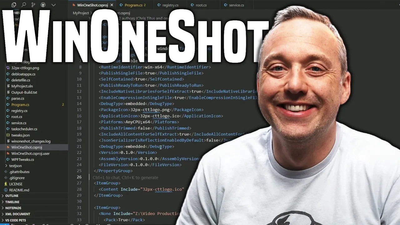 5 3. 6 something like that million runs so we're averaging I think 20 or 30,000 runs a day and that's a lot of traffic but I worry about what happens if Microsoft tweaks Powershell or makes it real exclusive or locks things down could cause some problems and that's when win one shop kind of enters the picture so this is what I've been working on wind development um but inevitably Microsoft a lot of the things and the the theming of this is just to make your life easier when you're using Windows and the whole purpose of this but I always think of hey there's always another way there's always another way so I'm thinking what happens when Microsoft inevitably does something to Powershell I don't like well for the past year I've started developing something a little bit uh cleaner faster and doesn't use Powershell at all and that's kind of an interesting thing but I don't want to reinvent the wheel right we spent years almost 5 years now developing all those tweaks with all those commands I've done a compatibility layer basically that transforms those Powershell commands into directly c. net libraries and then executes and those tweaks through a different method so instead of doing them through Powershell it'll just do them directly uh through C so what I did was I created an entire C library called win onot and this is just the the project file but if we go to the main program file um essentially it's grabbing tweak.
