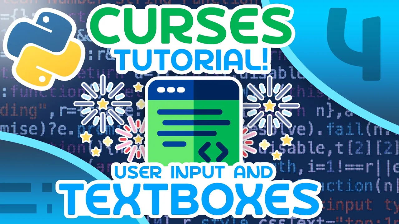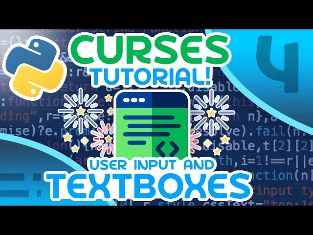 hello everybody and welcome to the fourth video in this python curses tutorial series in this video i'm going to be showing you how to get input from the user so how to get key strokes as well as the characters that they type so let's go ahead and get started [Music] all right so the first thing i want to show you is just how to get the keystrokes from the user and then i will show you how to actually implement a text box and some more advanced things so you can see here that we have std scr dot get ch now this is a method we've been using a ton and all this does is wait for the user to type something in and then give us the value of what they typed in so also note here that i'm in the same example i was in all the other videos i've just cleared everything other than the colors so what i'm going to do is say key is equal to and then this line here now this is again going to wait for the user to type something and then give us the ordinal value of what they typed now the ordinal value is going to be the number that represents the character they typed now if you don't want the ordinal value instead you want to get the actual key name then you can use getkey now this will give you like a if you type in a it will give you like shift or like left underscore shift if you hit that key there's a bunch of kind of weird names for all of the i guess controls on your keyboard other than just the regular characters but hopefully you get the idea so what i'm going to do here is i'm going to allow the user to type something in and then i'm just going to show it on the screen so i'm going to say let's go std scr. ad string and then let's add an f string and let's say key colon and then we'll go with key like this inside of here and we can place this at like five five that's fine okay then we'll refresh the screen so let's say refresh and then we will wait for the user to type something in except this time i don't care what they type in so i'm just going to use get ch like that and this will just mean we aren't going to immediately exit the program we have to enter or some other key before we continue okay so let's run this and let's just see what happens so i'm going to run python tutorial 4 okay i'm going to type in h and then no notice when i type in h it shows key and then h okay so let's get out of this let's run it again let's try hitting escape notice it gives me this key apparently that's the key that escape represents or that represents escape okay let's continue let's go to something like three it's gonna give me 3 okay let's try this again let's go with l okay it gives me l you get the idea it gives us the keystroke that the user typed in now the thing is here it's waiting for the user to type something that's fine we can wait for the user to type something a lot of times we want to do that but sometimes we just want to kind of be listening for the user to type in any key and if they hit any key we're going to respond to it so now i'm going to change this example a little bit and i'm going to listen for the arrow keys and if the user hits an arrow key i want to kind of move something around the screen so this will be a bit more of an advanced example but i think this is fine to go through so let's get rid of all of this right now and let's set up a wall i'm going to say while true and inside of here what i'm going to do is i'm going to get the key that the user types so i'm going to say std scr dot get and then this is going to be key we're going to store this in key then what i want to do is i want to check if this key is one of the arrow keys so i actually have to look at what the name of the arrow keys are let me look for those and i'll be right back okay so it looks like they're pretty straightforward it's just going to be key like this underscore left so this is an underscore story and then up right and down that's what the name is for the arrow keys so what i'm going to do here is say if key is equal to this then we'll do something we'll say alif key is equal to then this will be key underscore right then we'll do something so pass and then we'll say l if key is equal to k underscore up then we'll do something pass and then we'll say l if key is equal to key underscored down then we'll do something now what i'm actually going to do is i'm going to say my x comma y is equal to 0 0 and if i hit the key left i'm going to say x minus equals 1. if i hit the key right i'm going to say x plus equals 1.