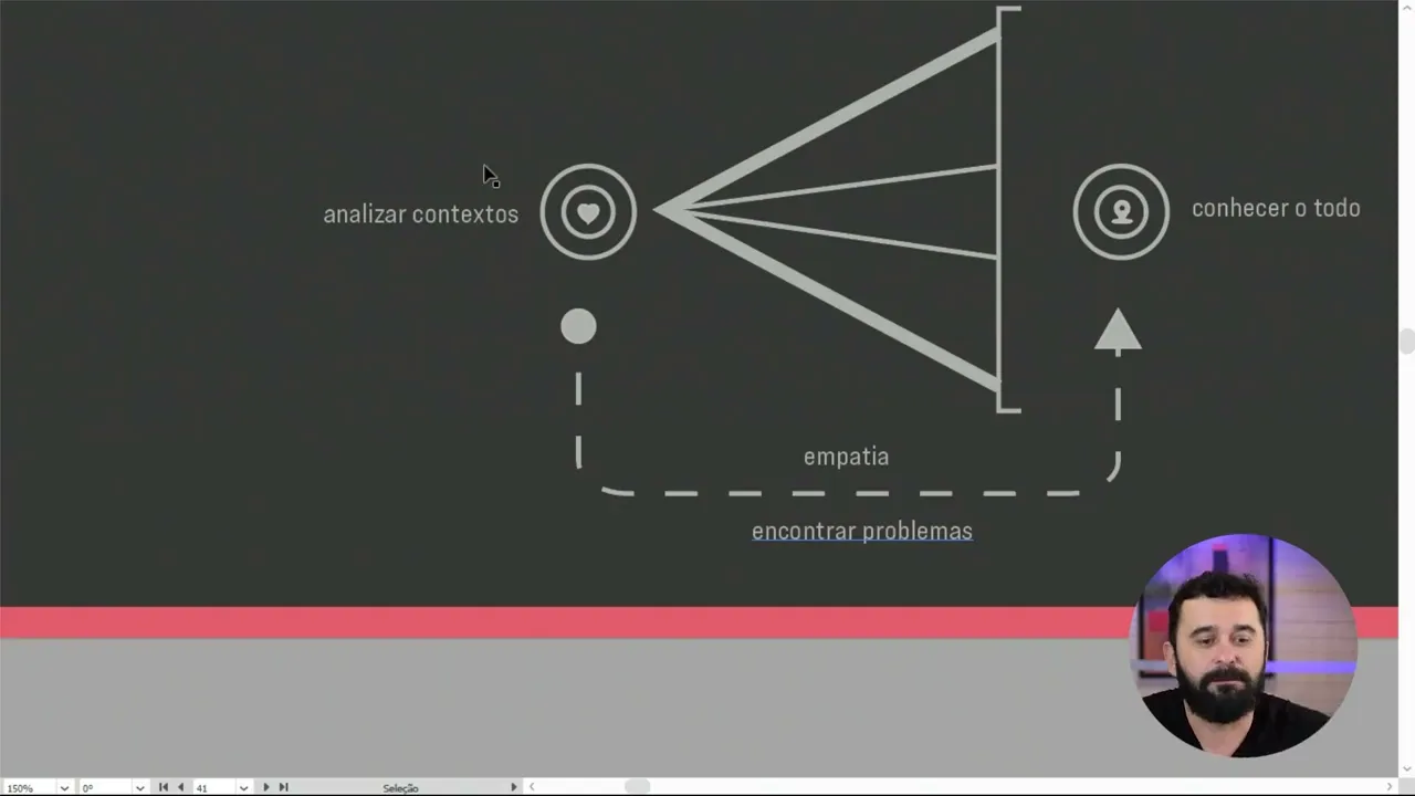 na nossa na nossa solução a gente vai analisar contextos vai conhecer aquele ecossistema Ok e vai encontrar o os problemas que são inerentes ele foi a gente trazer a Solução em muitos casos a gente vai nessa análise que a gente vai fazer a gente vai encontrar mais pontos de dor do que aquele que veio para gente na demanda Tá e isso que que traz de benefício para gente a possibilidade a gente Estendeu o nosso trabalho para além de um trabalho só antes a gente por faz a loguinho fácil tá aqui valeu tchau né depois o