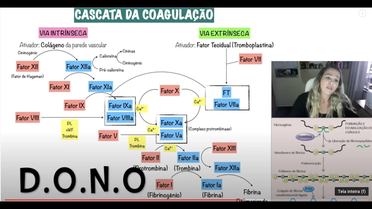 Oi e aí não paga beiradinha vamos para a nossa segunda parte sobre hemostasia e coagulação Então vamos lá então nós falamos o primeiro vídeo a respeito da participação das plaquetas né que compõem a chamada hemostasia primária agora nesse vídeo vamos falar sobre a hemostasia secundária que envolve a formação daquela chamada rede de fibrina né que é o que vai dar estabilidade Obrigado proprietário essa fibrina a gente é uma proteína insolúvel no plasma e ela não está pronta ela vai ter que ser feita a gente vai ter que produzir essa rede e é o seguinte a
