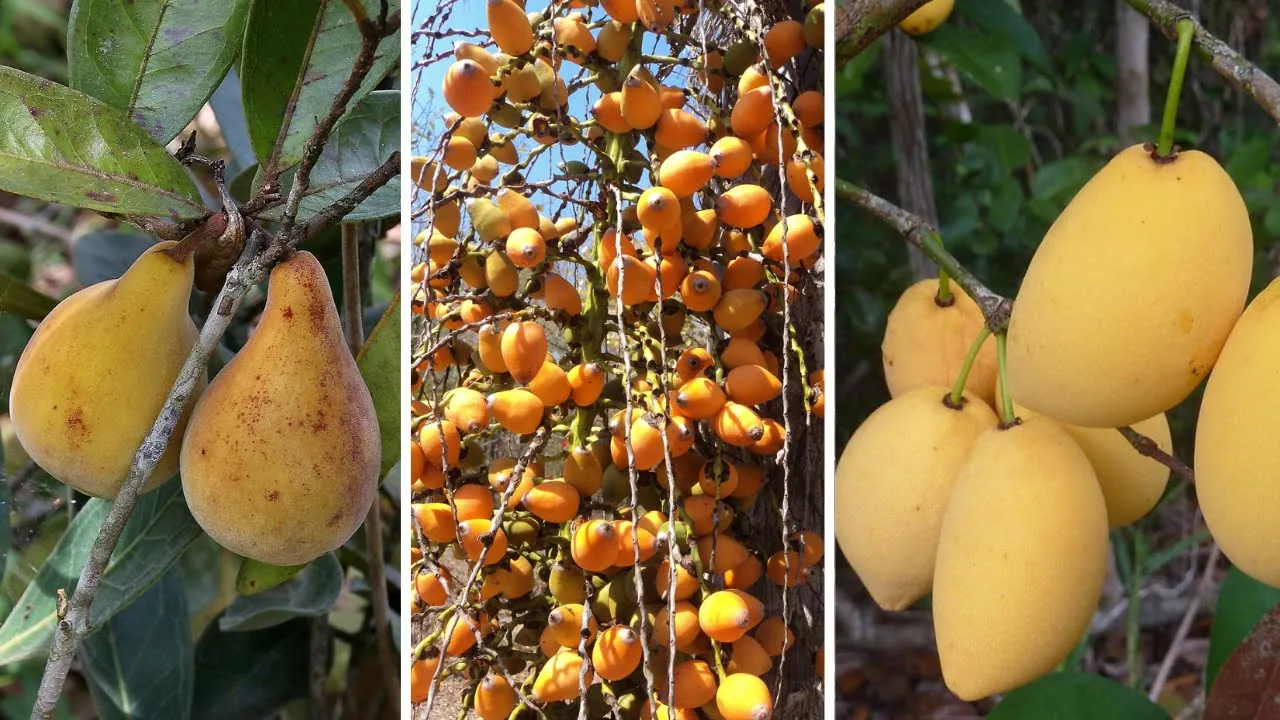 Nativa do cerrado brasileiro e ele pode atingir até 25m de altura as suas folhas são verdes e As Flores São pequenas decoração Branca esverdeada que floresce de Outubro a Janeiro o seu público é de cor marrom claro e quando amadurece fica amarro e escuro e ele é protegido por uma dura casta que no interior encontra-se uma amêndoa desse Sabor parecido com o do amendoim de alto valor nutricional que é muito apreciado pelas pessoas número 5 bacupari o bacupari é uma fruta nativa do Brasil encontrada na região Amazônica ao Rio Grande do Sul e no cerrado