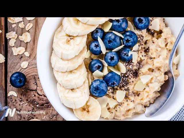 your mouth or if you have excess abdominal fat from previous meals spilling over into your bloodstream but either way what does animal protein have to do with it it turns out a branched chain amino acid breakdown product appears to stimulate fat uptake and accumulation inside the muscle cells but oatmeal doesn't have any saturated animal fat or animal protein okay but neither does any plant food why might oatmeal work particularly well that's the question I explore next [Music] okay thank you